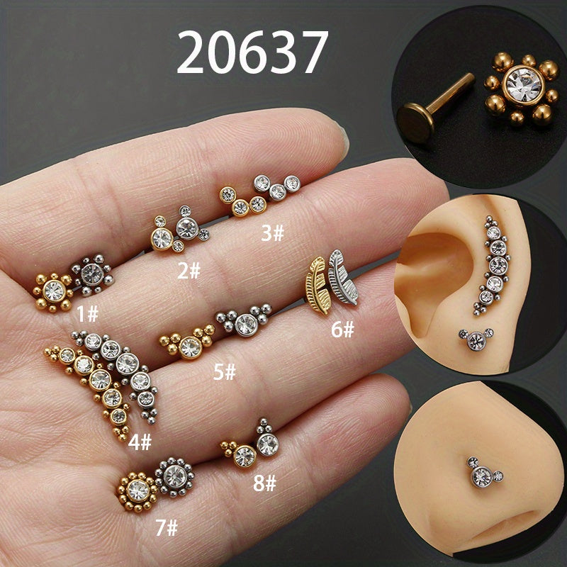 This stylish 316L stainless steel stud with zircon ball and leaf is perfect for lip, ear, and body piercing. The high-quality material ensures durability and the zircon ball adds a touch of elegance.