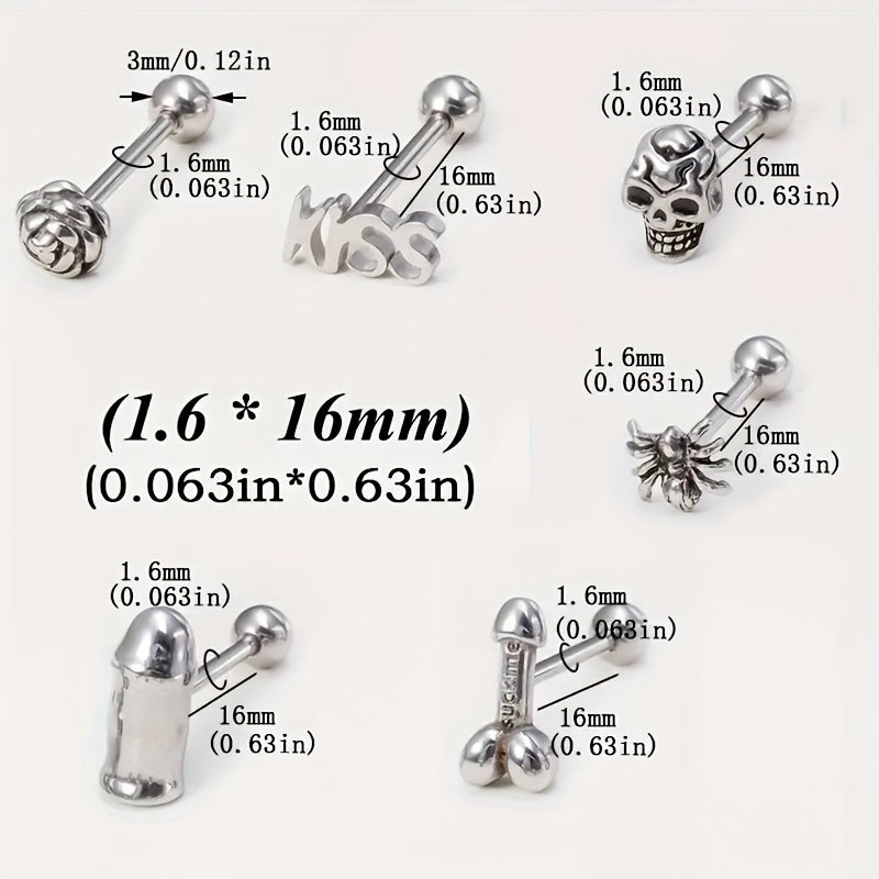 This punk body jewelry in 1.6x16mm is perfect for men who want a unique look. Made from high-quality surgical steel, this barbell stud is durable and stylish.