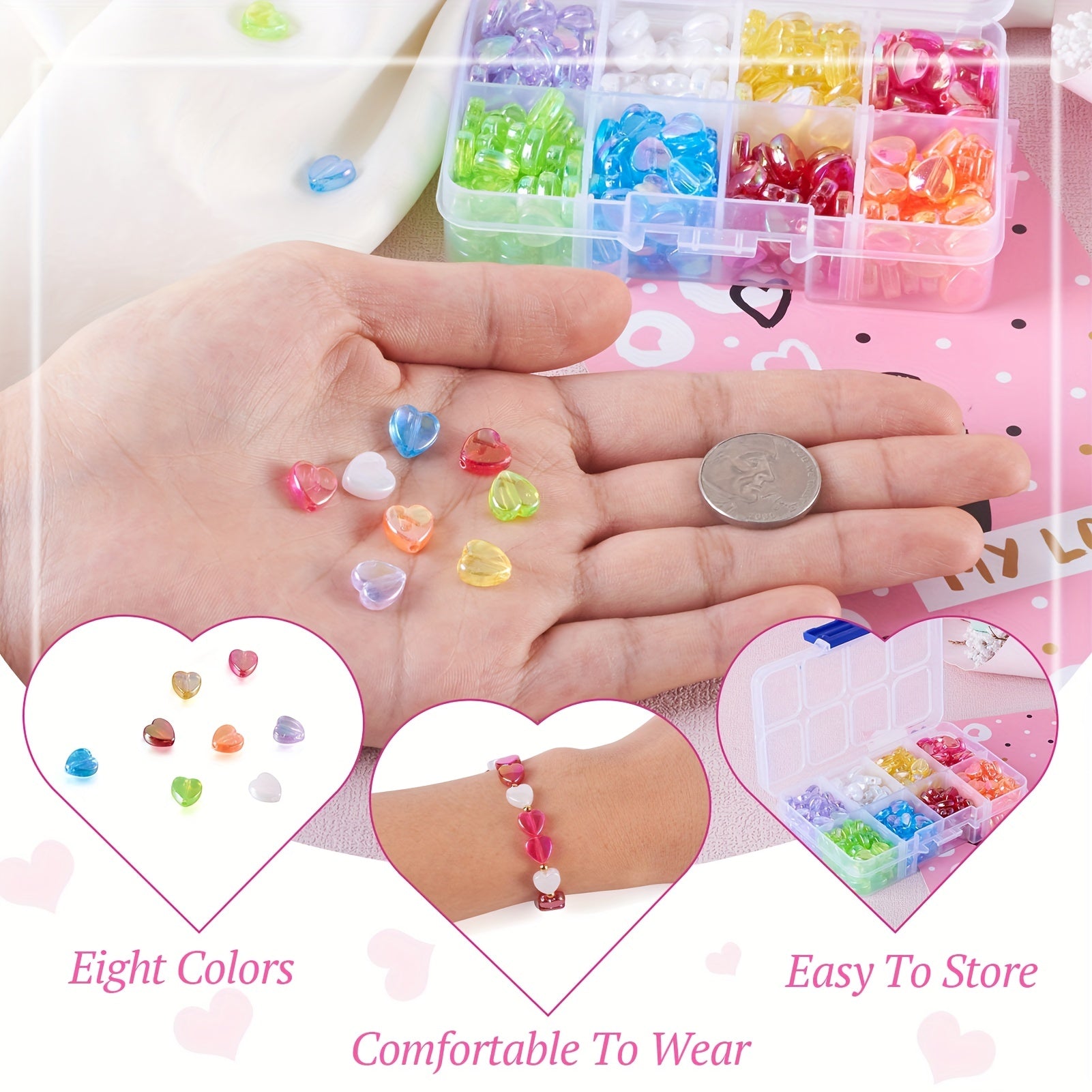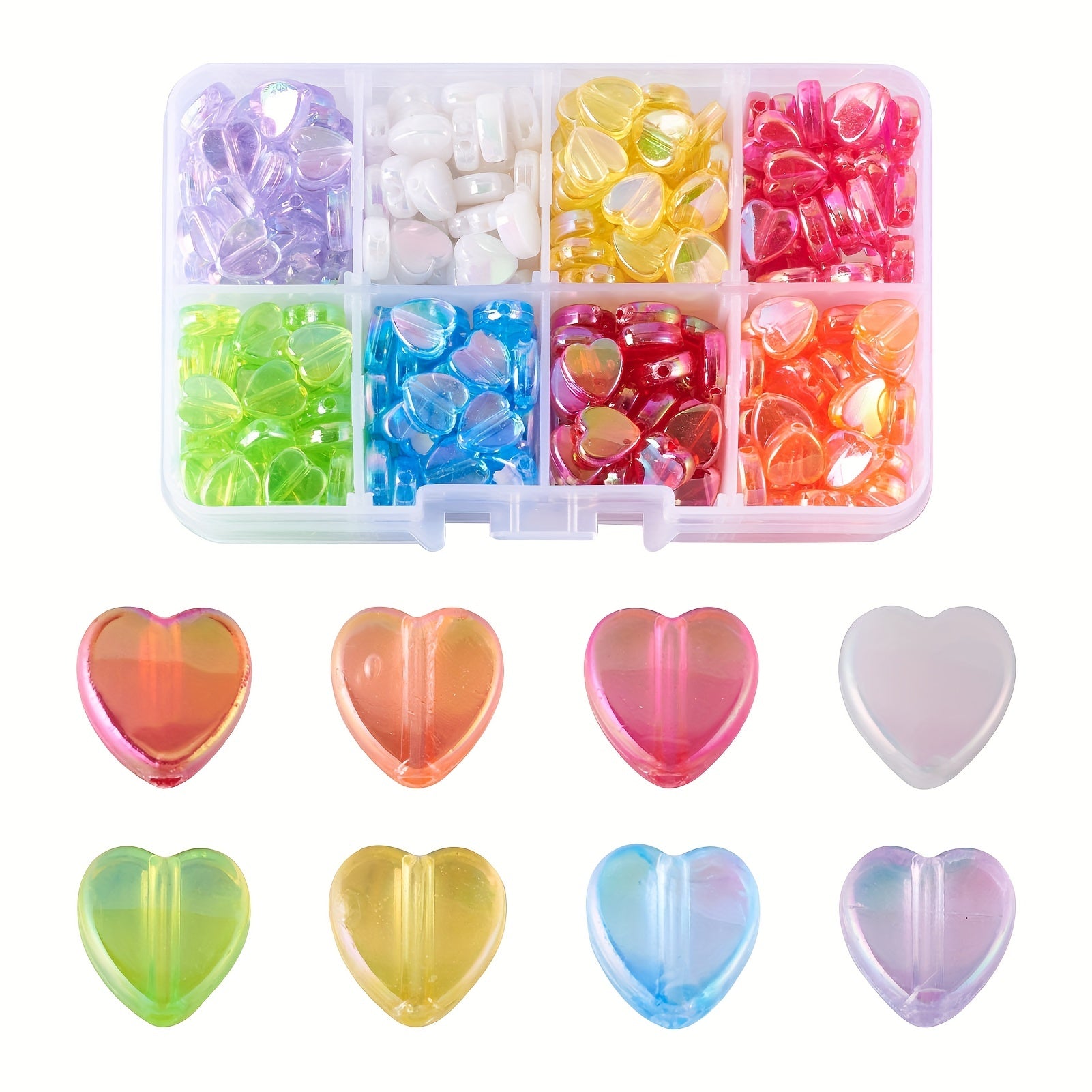 This box contains 320 mixed transparent heart shape acrylic beads, ideal for making necklaces, bracelets, earrings, and other jewelry accessories.