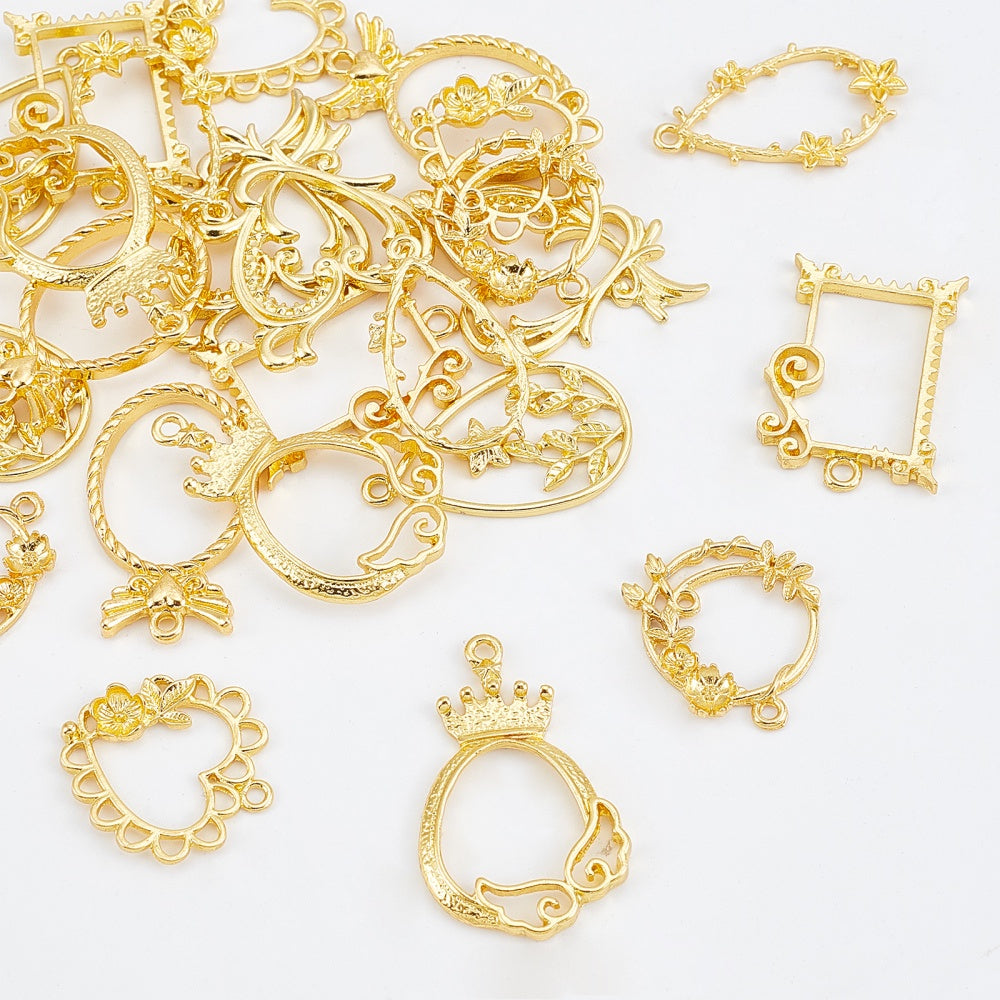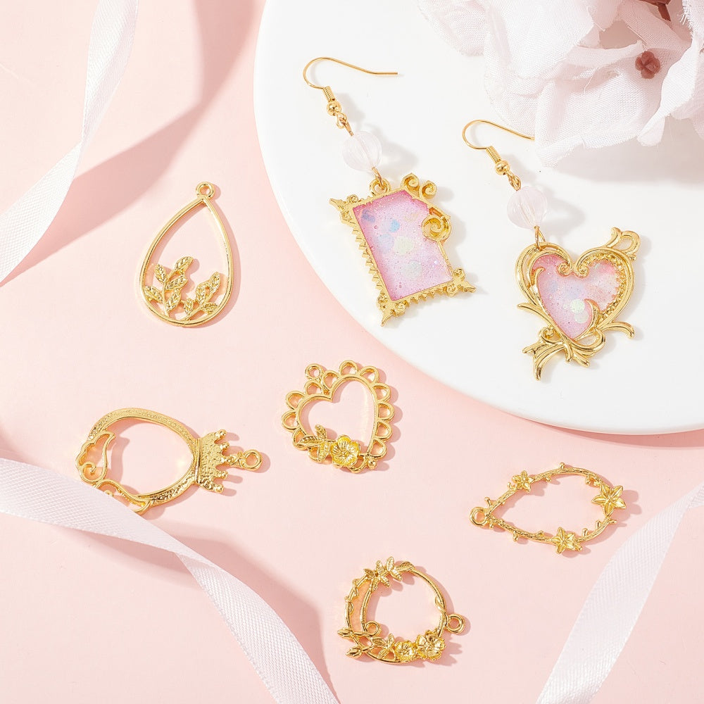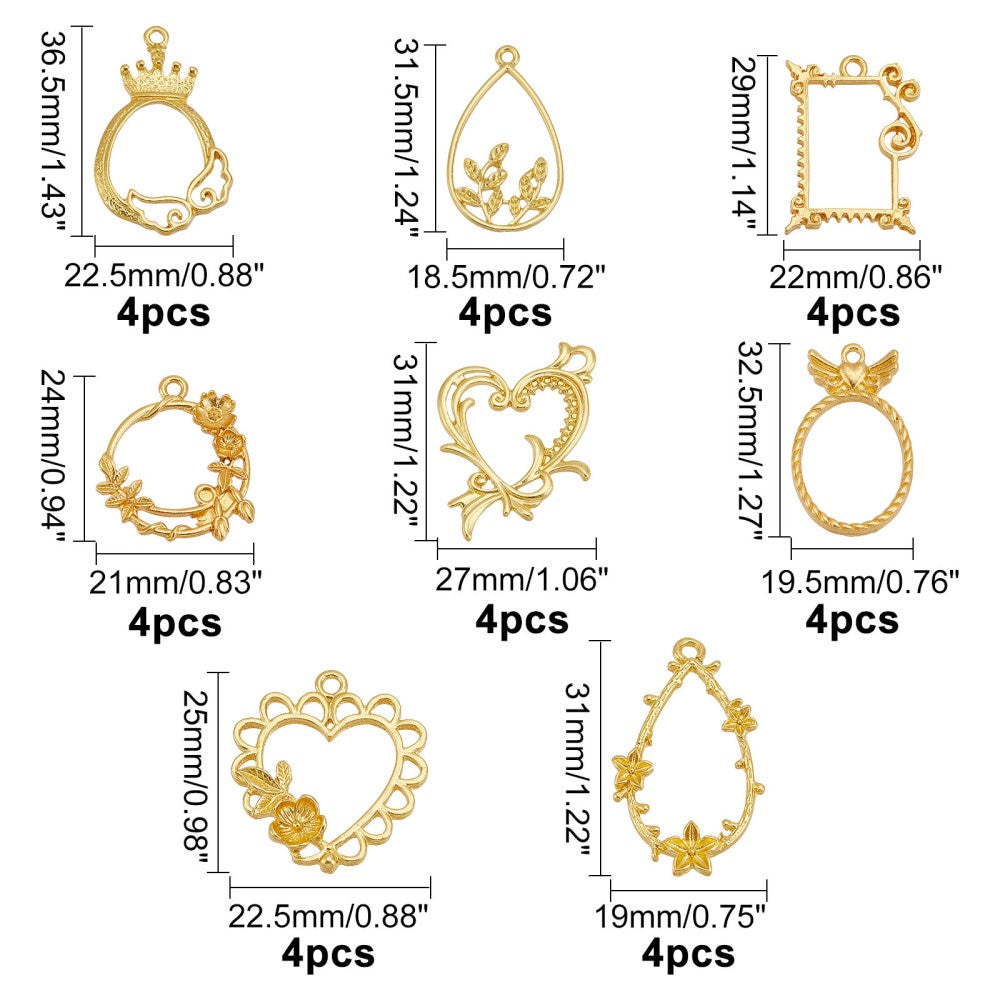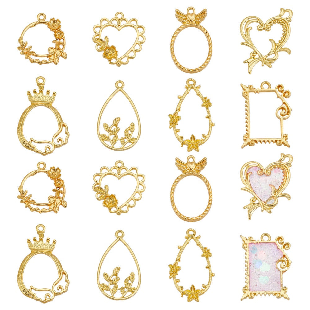 Create stunning resin jewelry with these golden open bezel charms. The hollow resin frames are perfect for crafting unique pendant necklaces.