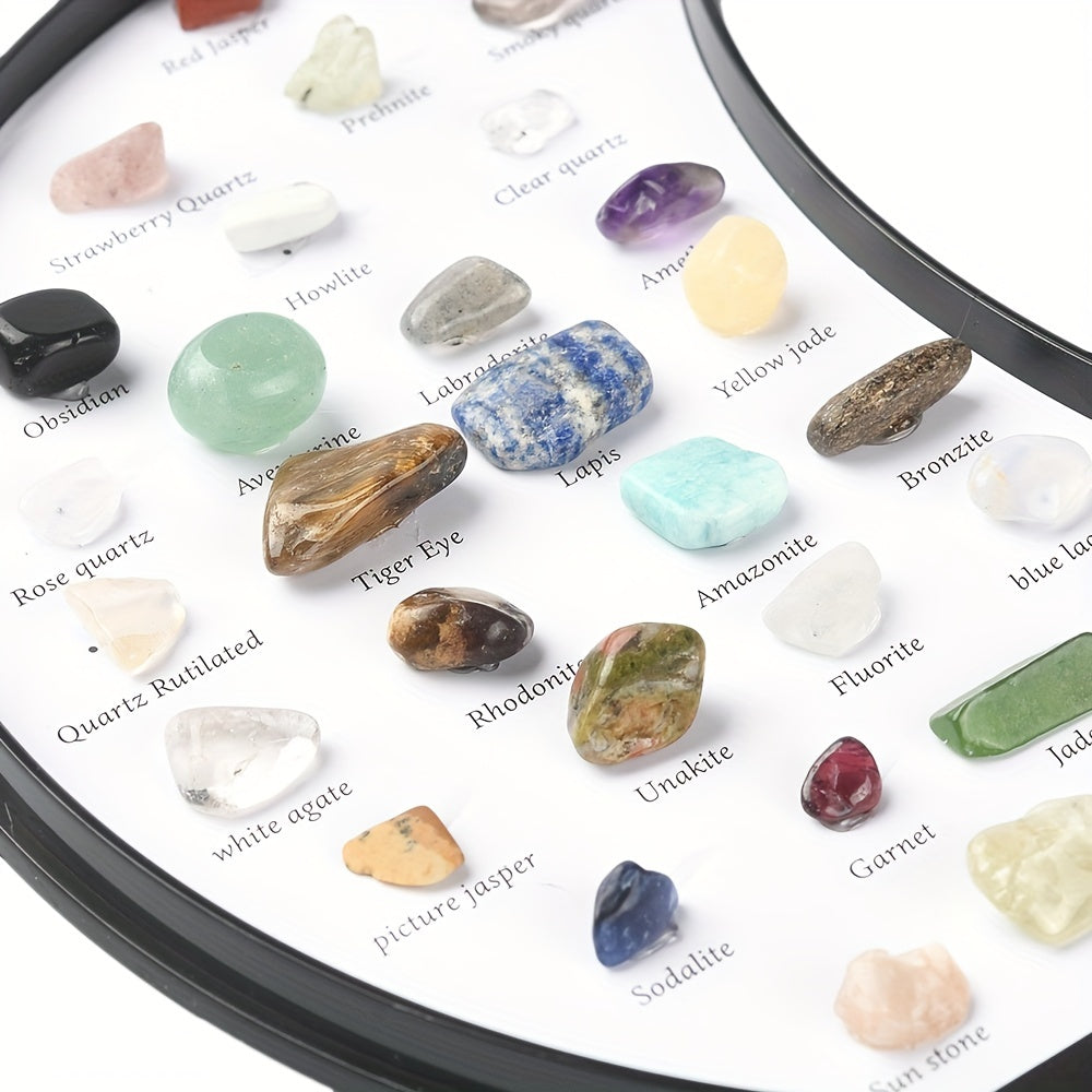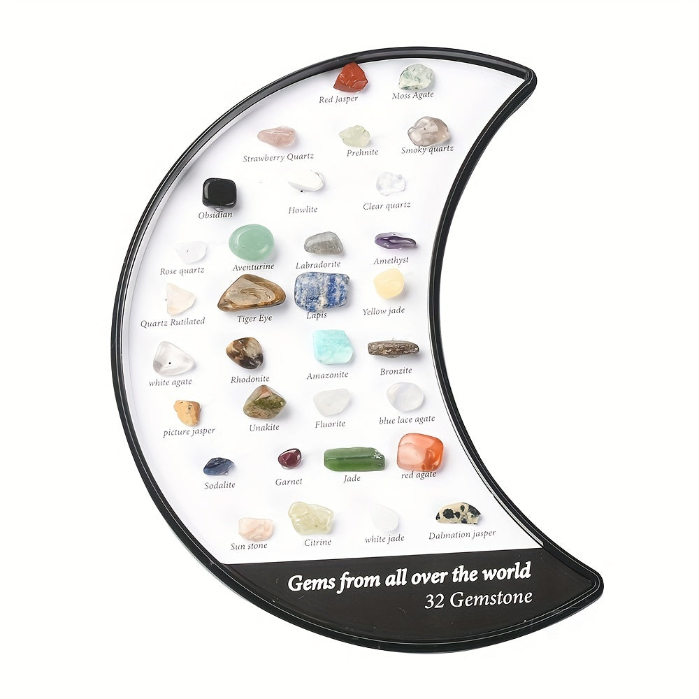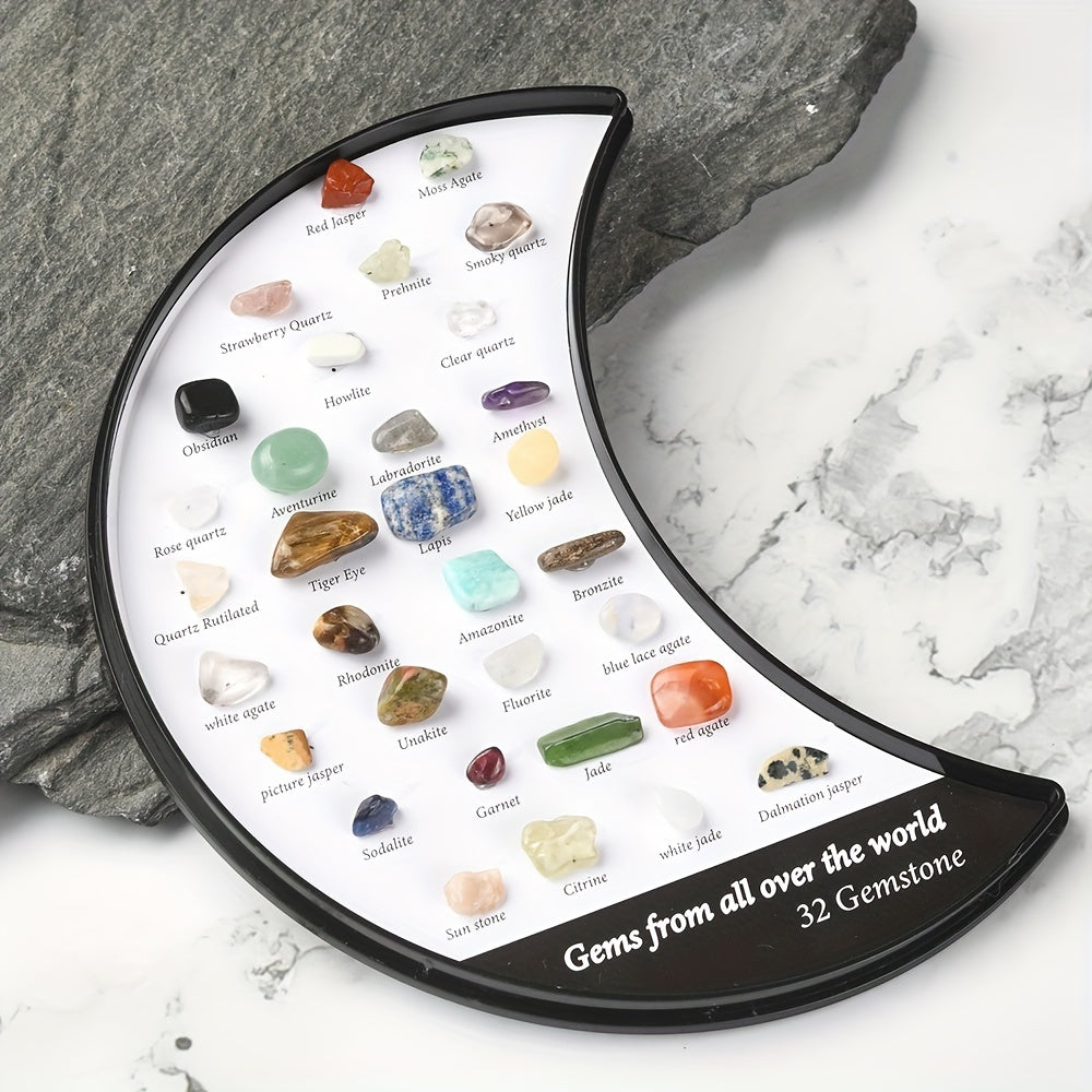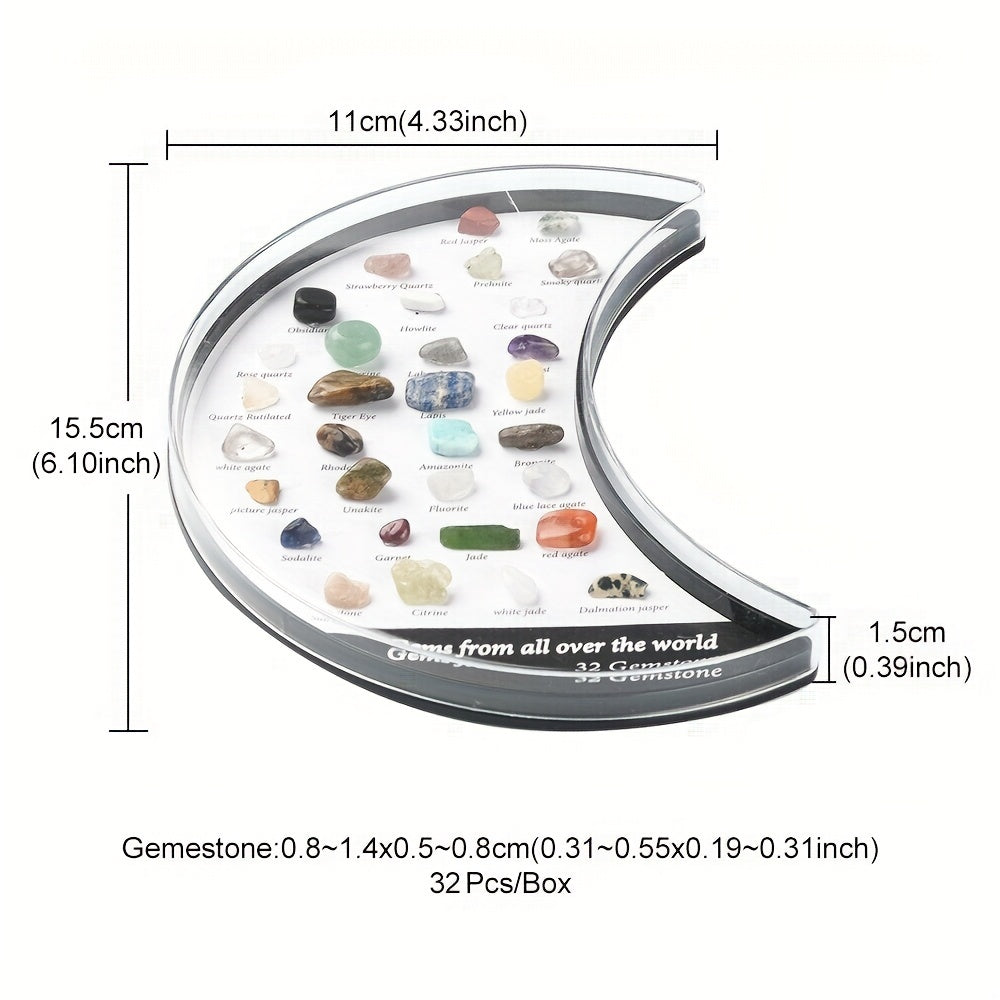 32pcs Natural Crystal Agate Stone Gemstone Ore Specimens in Moon Shaped Box Set