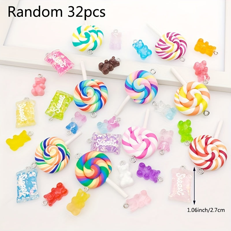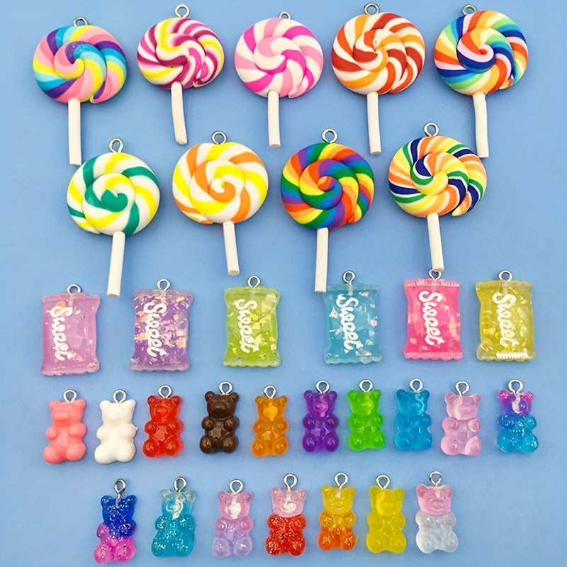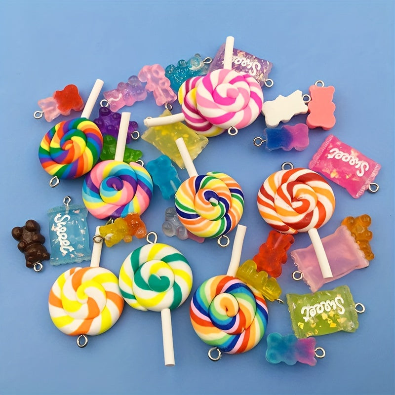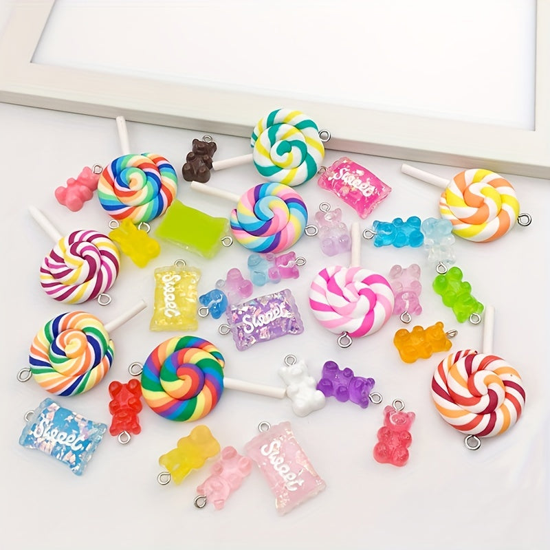 Create adorable jewelry pieces with these random resin candy lollipop bear charms. Perfect for earrings, necklaces, bracelets, and keychains.