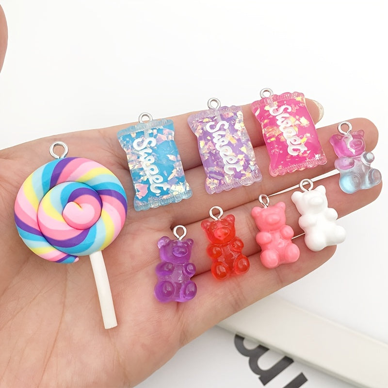 32pcs Resin Charm Sets Slime Lollipop Bear Candy Pendants For Bracelet