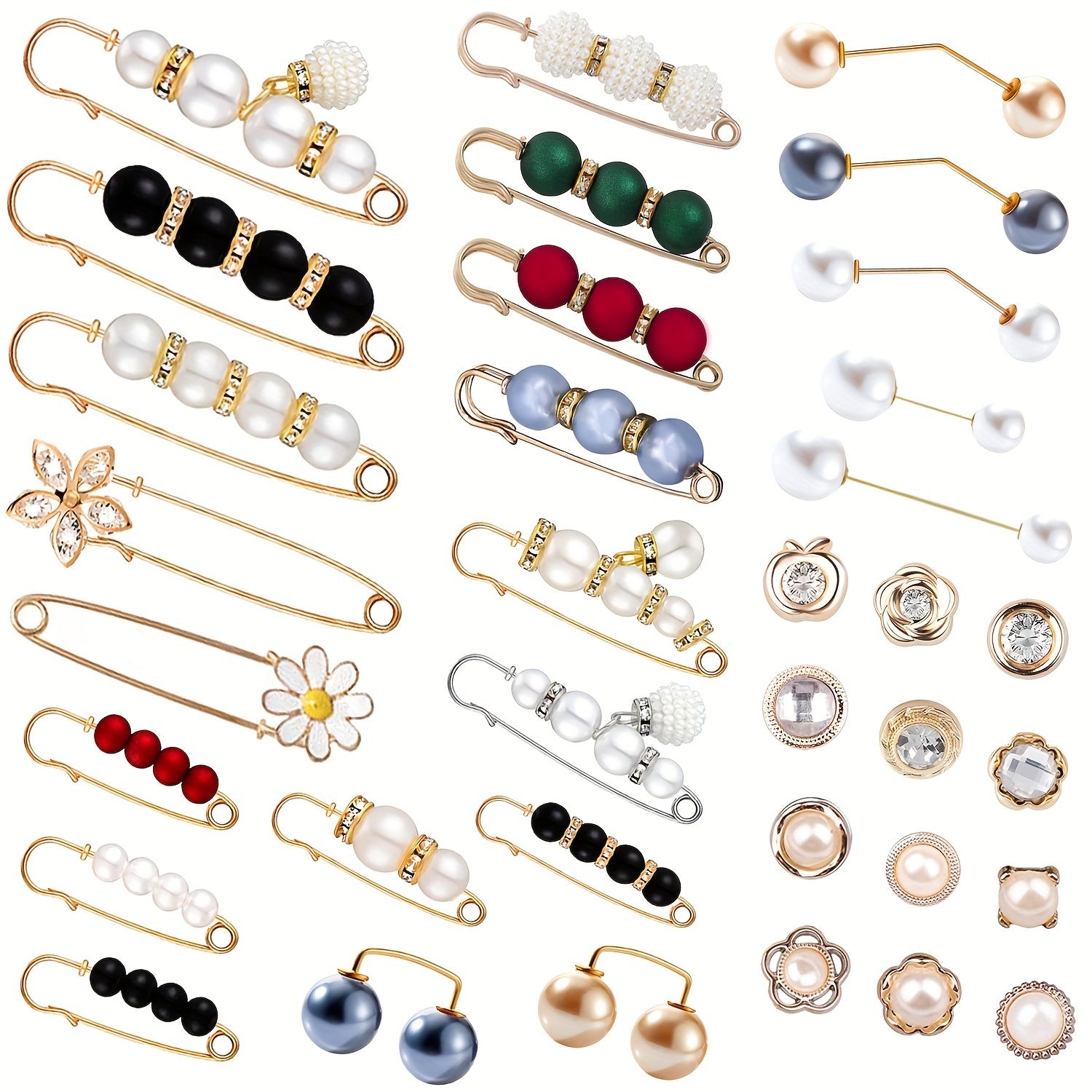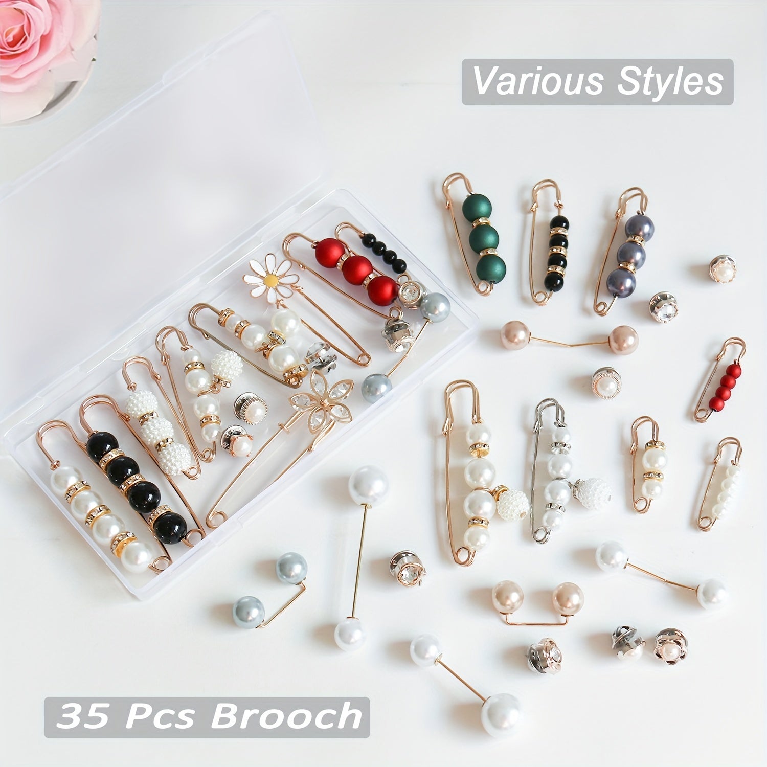 35 Pcs Freshwater Pearl Brooch Sweater Shawl Hat Clip Neckline Pins Brooches