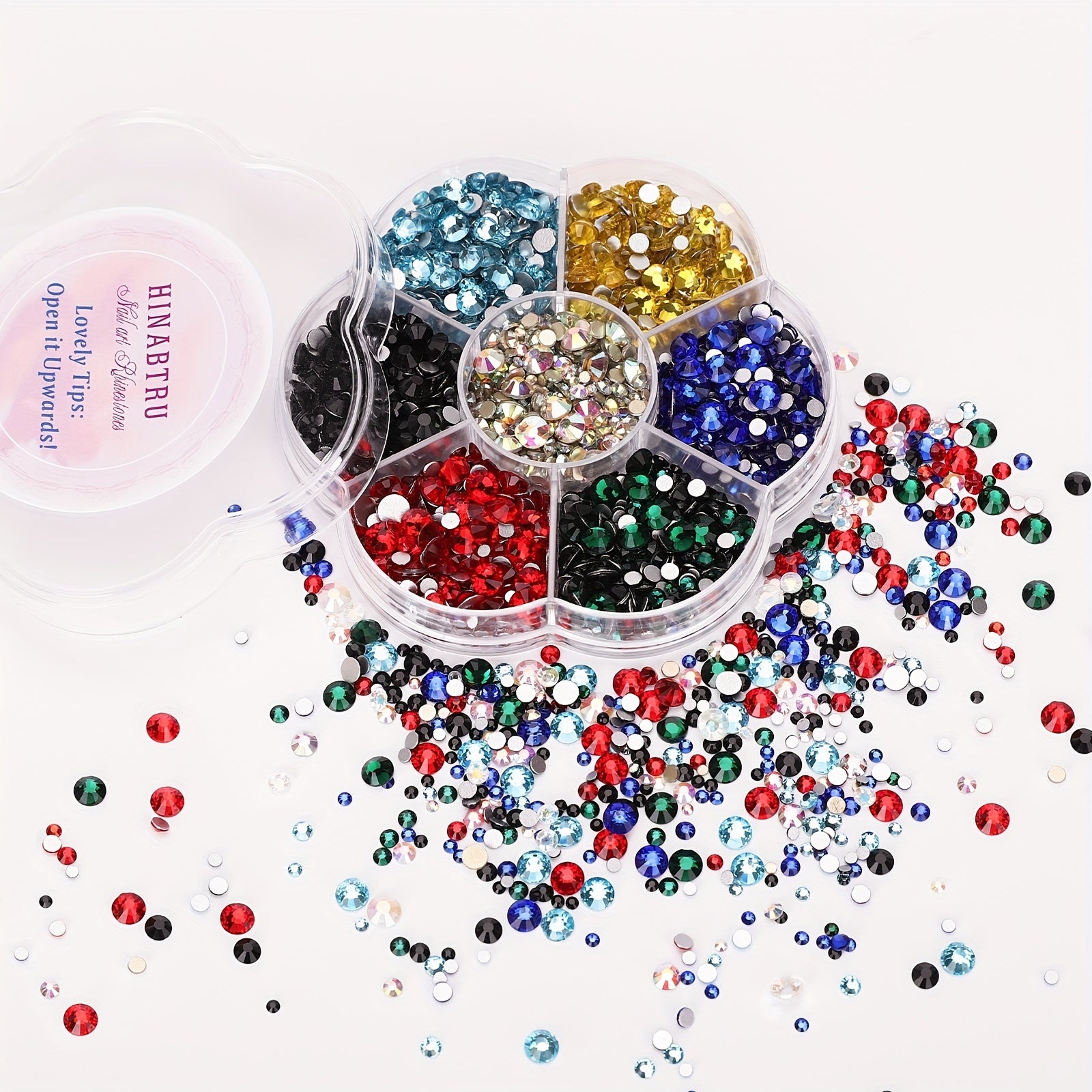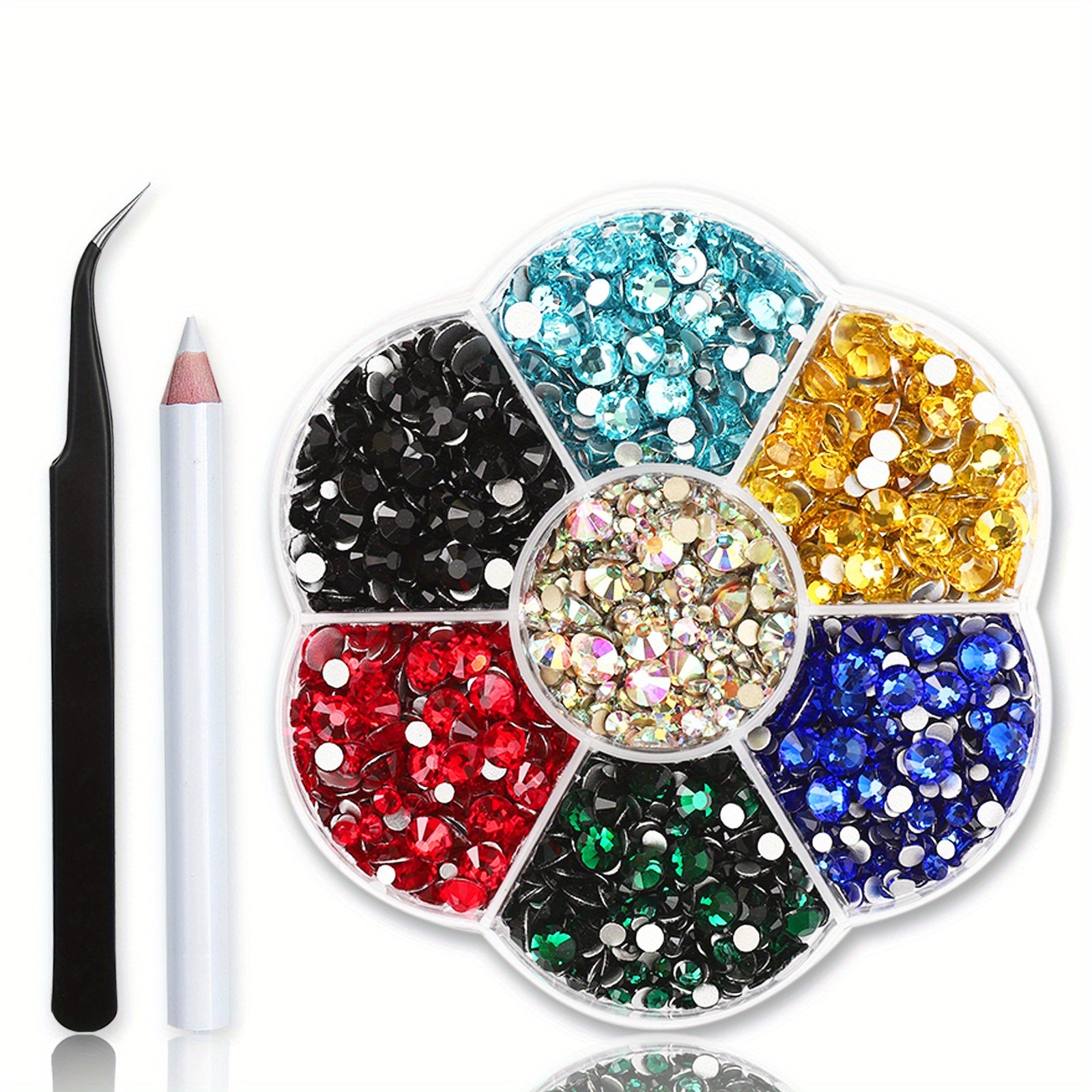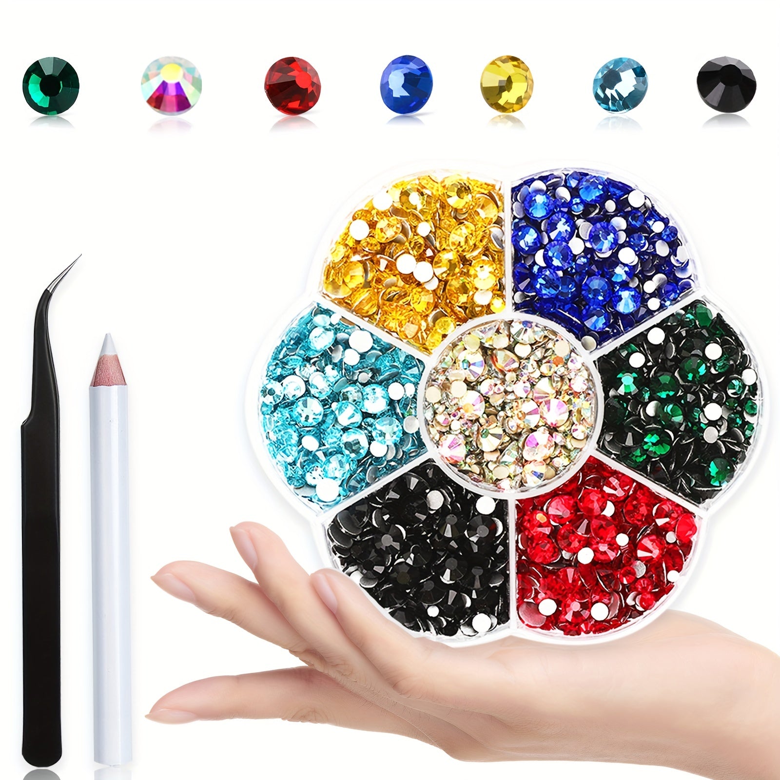 Enhance your nail art, eye makeup, crafts, and jewelry making with this set of 3600pcs round glass rhinestones in red, green, yellow, and AB colors. Comes with tweezers for easy application.