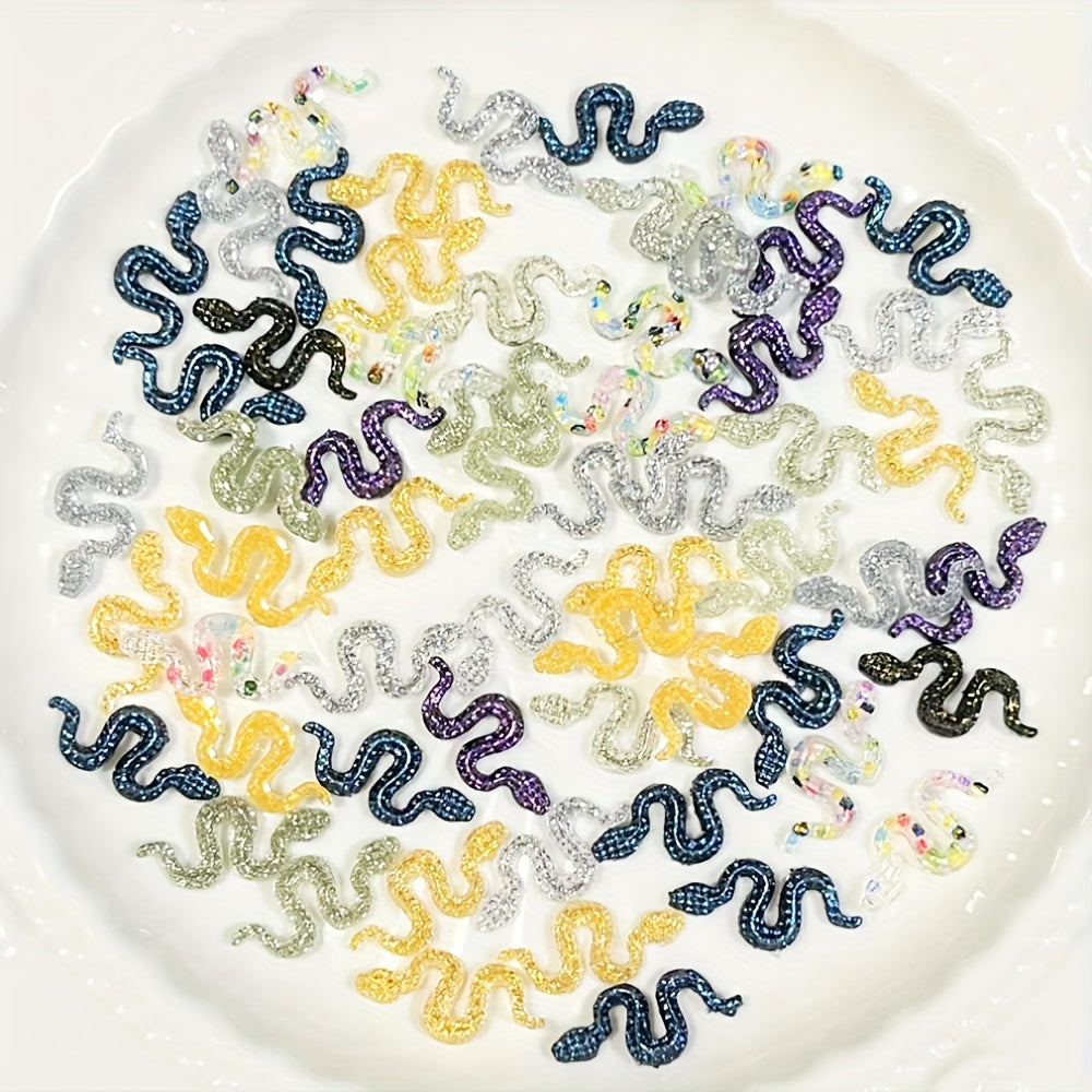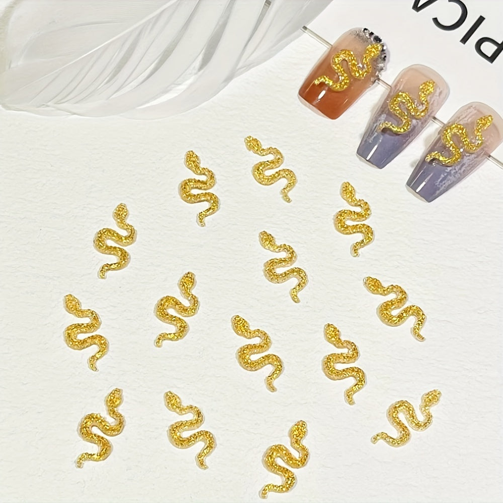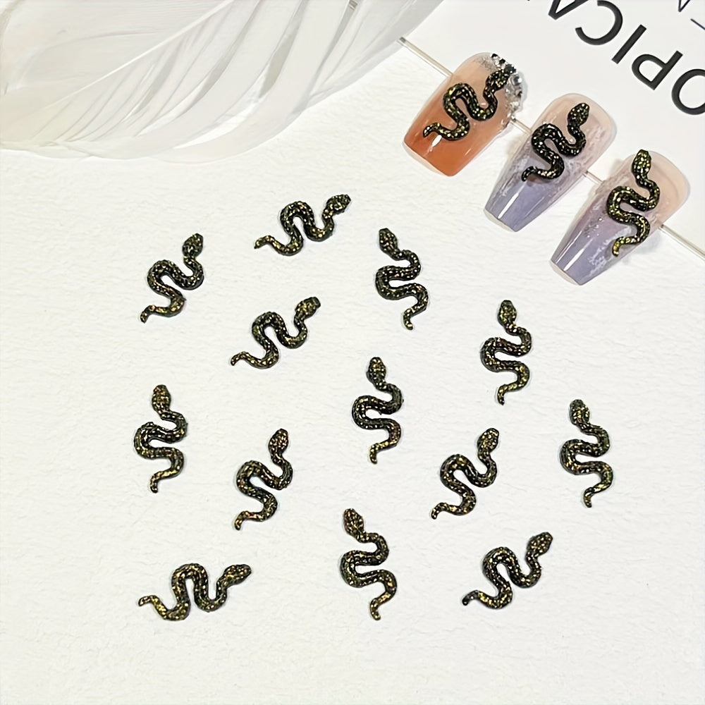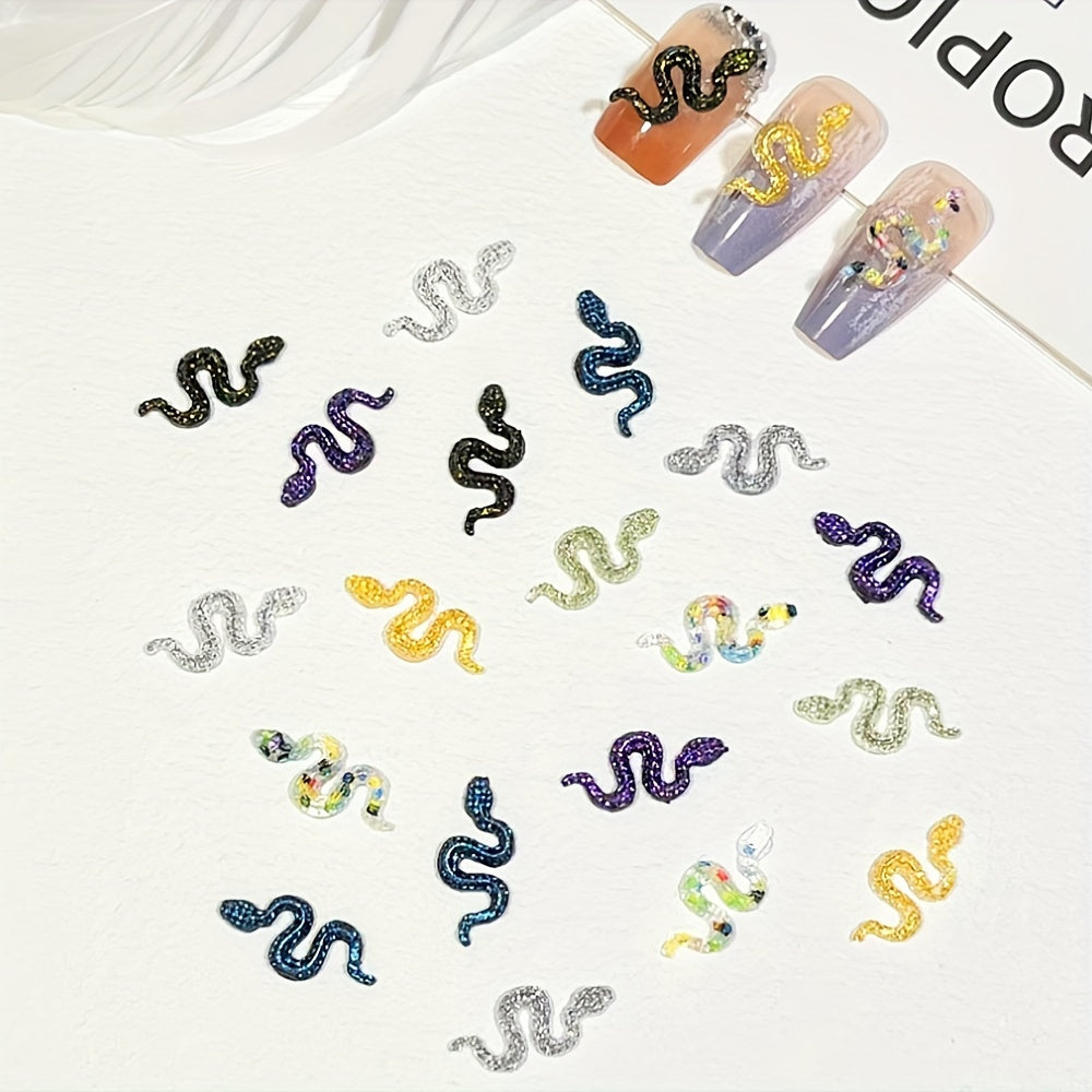 Add a touch of edgy glam to your nail art with these 3D snake decorations. Perfect for creating unique and eye-catching nail looks.