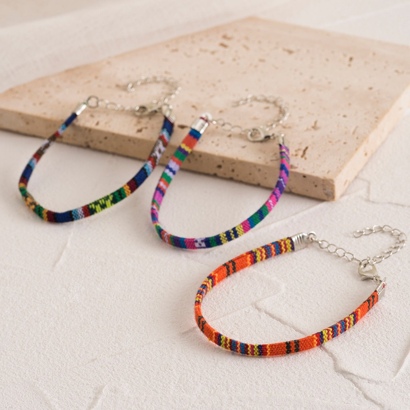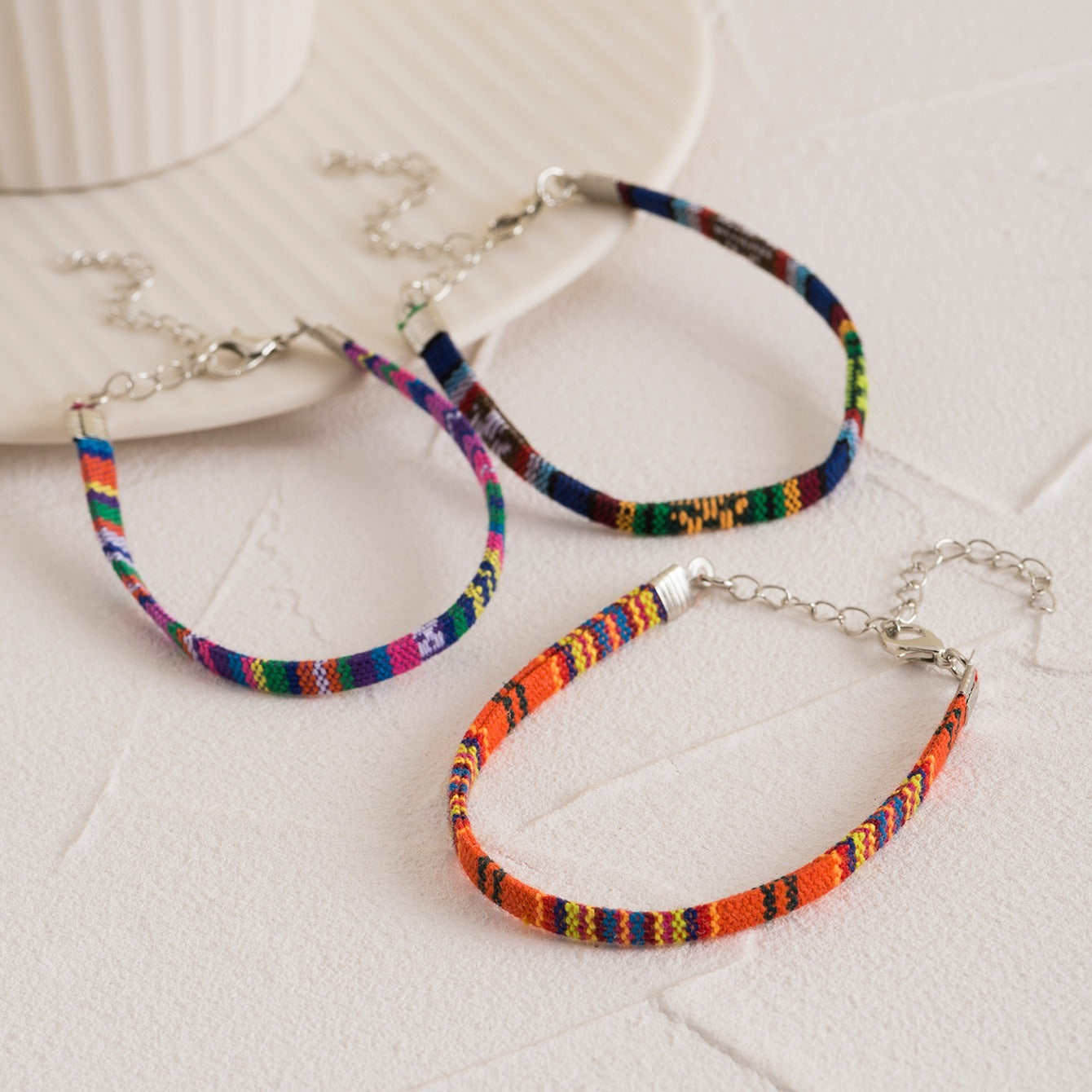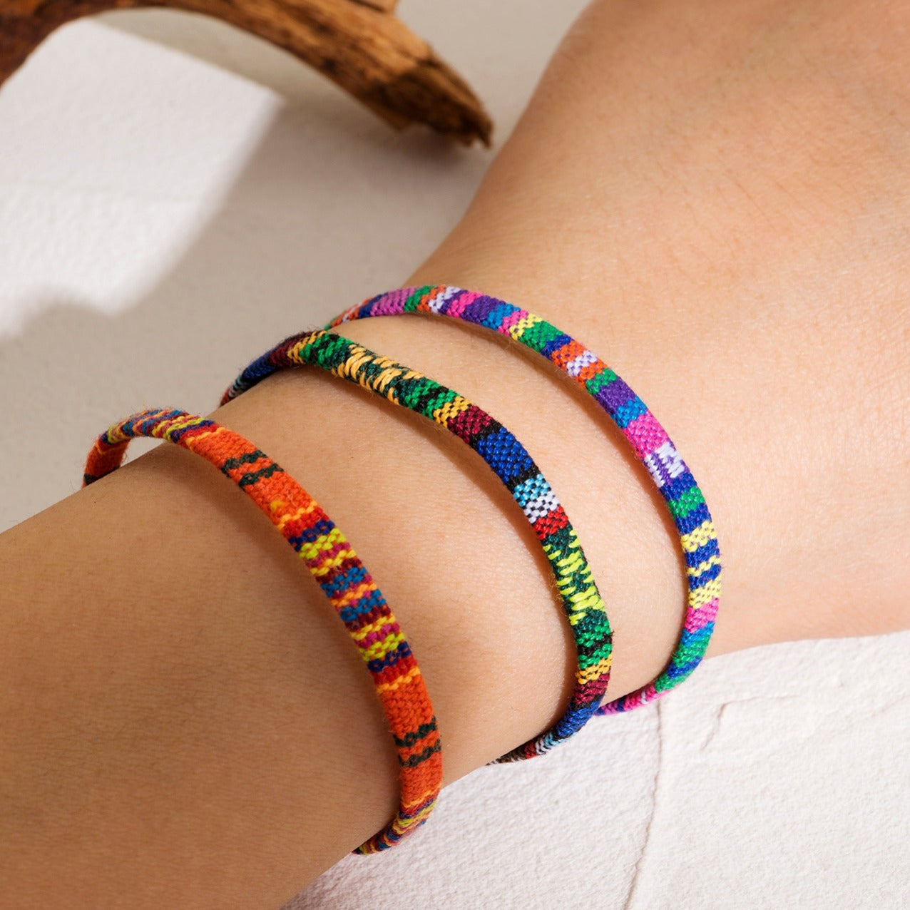 This set includes 3 colorful braided bracelets that add a pop of color to your outfit.