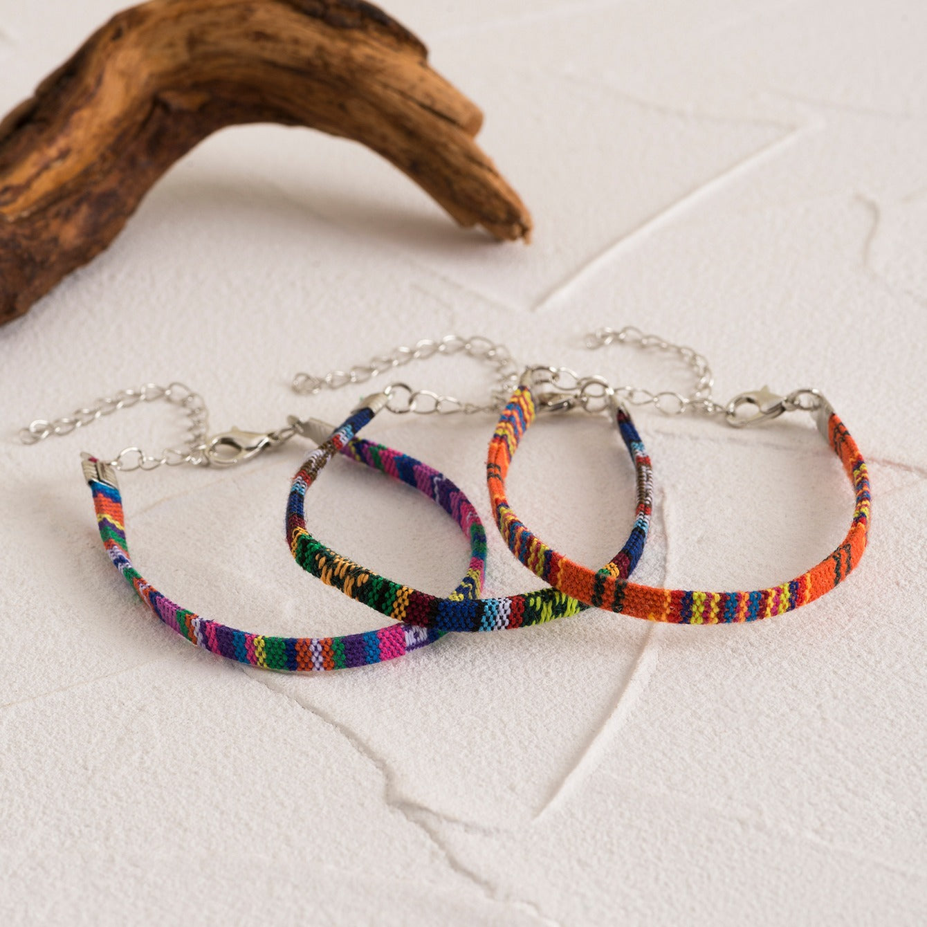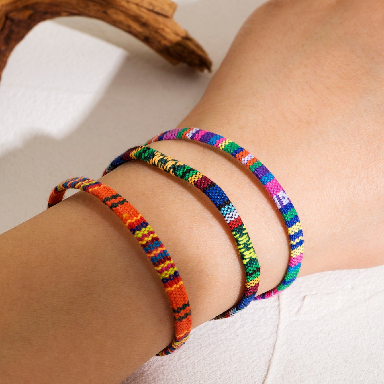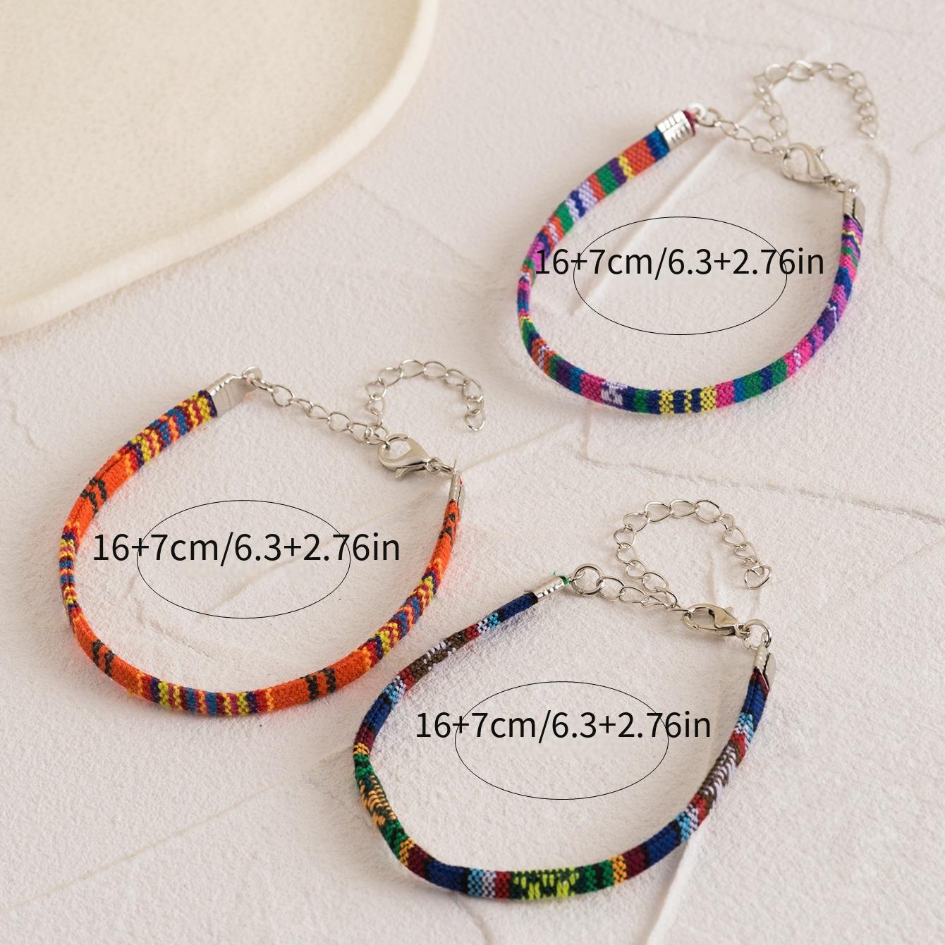 This set includes 3 colorful braided bracelets that add a pop of color to your outfit.