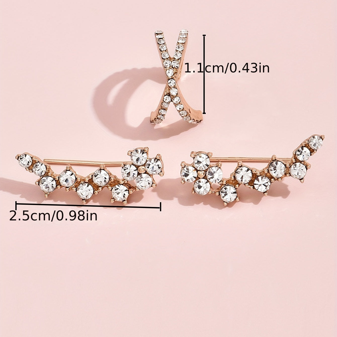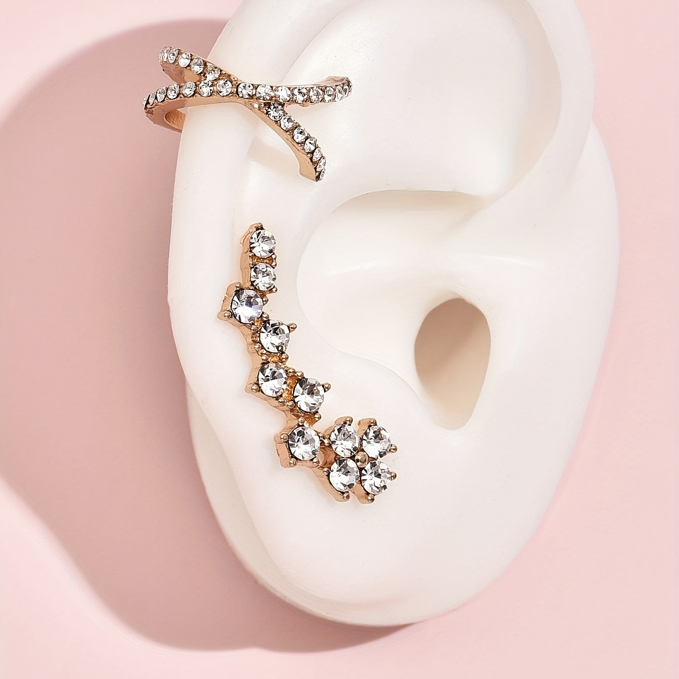 Add a touch of sparkle to your look with this set of 3 rhinestone ear clip earrings. Perfect for daily wear, parties, and proms, these earrings will elevate your style and add a touch of elegance to any outfit.