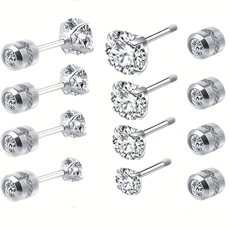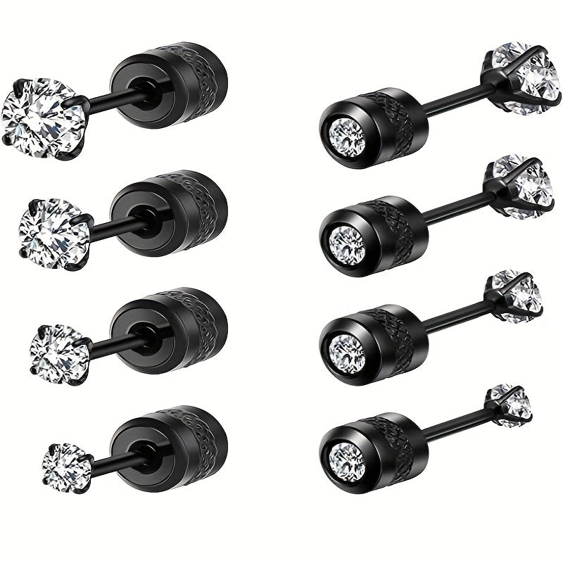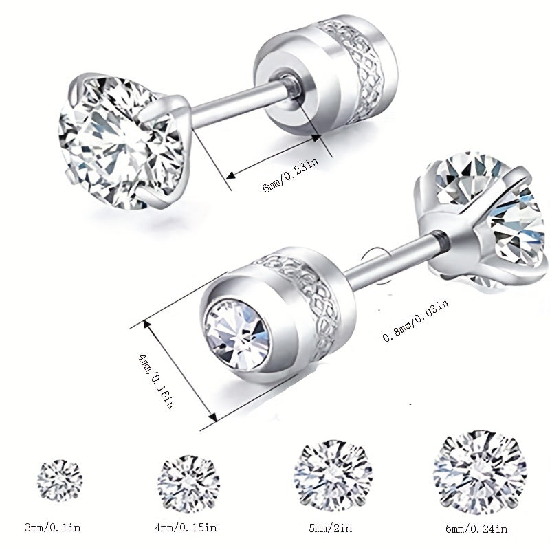 These stainless steel stud earrings feature a spiral design with zircon accent, perfect for men and couples. Hypoallergenic and durable for everyday wear.