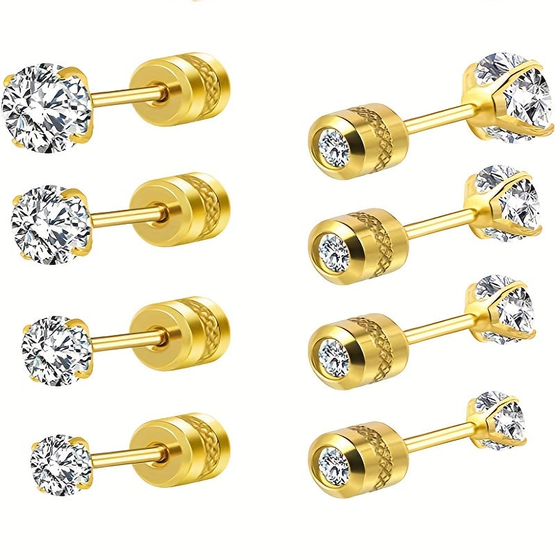 4 Pairs Spiral Stud Earrings Hypoallergenic Double sided Zircon Earrings