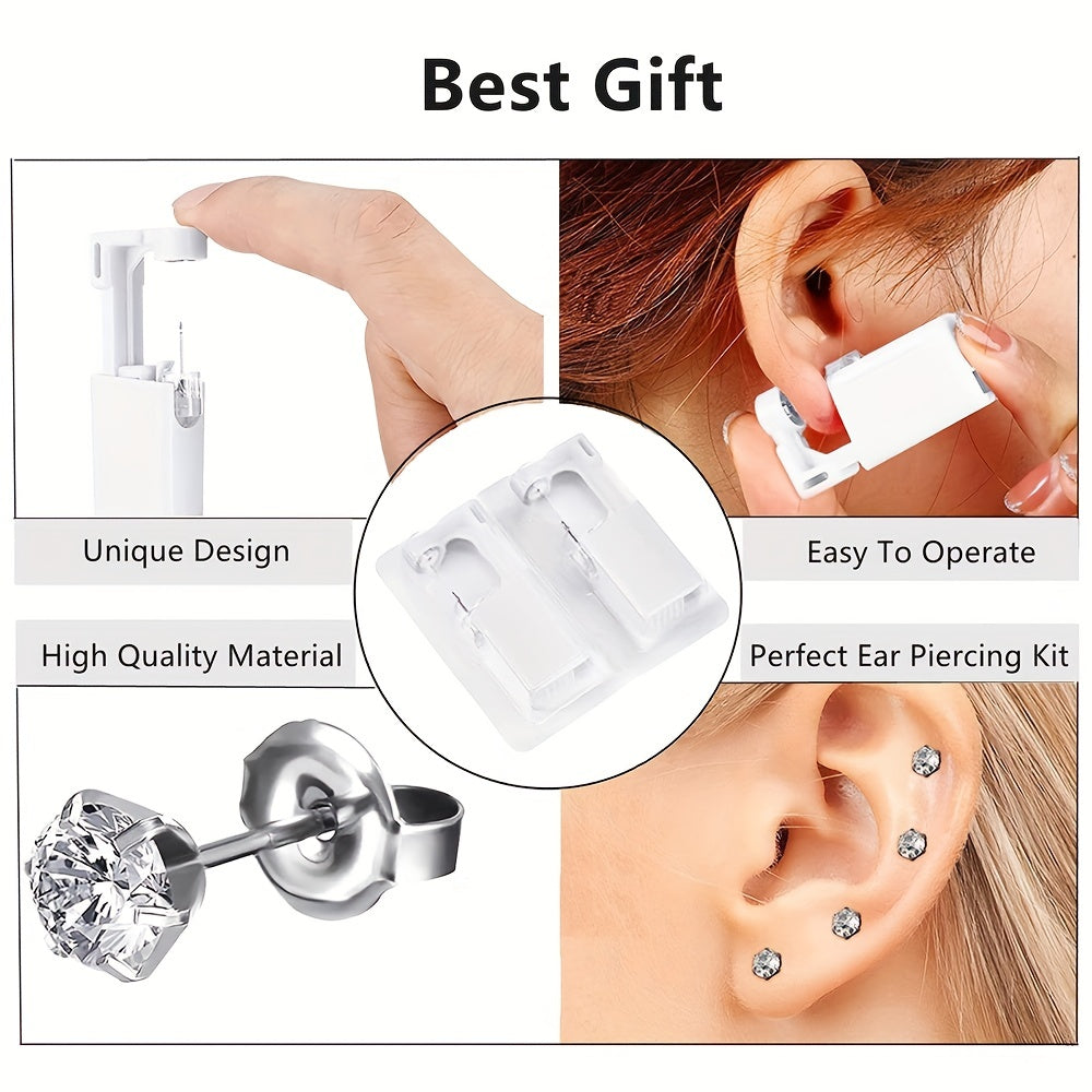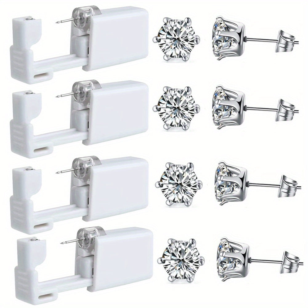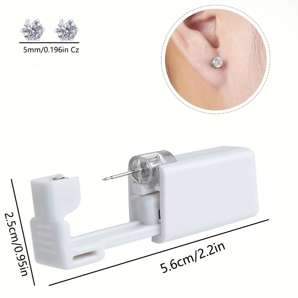 This ear piercing kit includes 4 disposable sterile ear piercing guns with built-in 5mm ear studs. It is designed for painless and safe ear piercing.