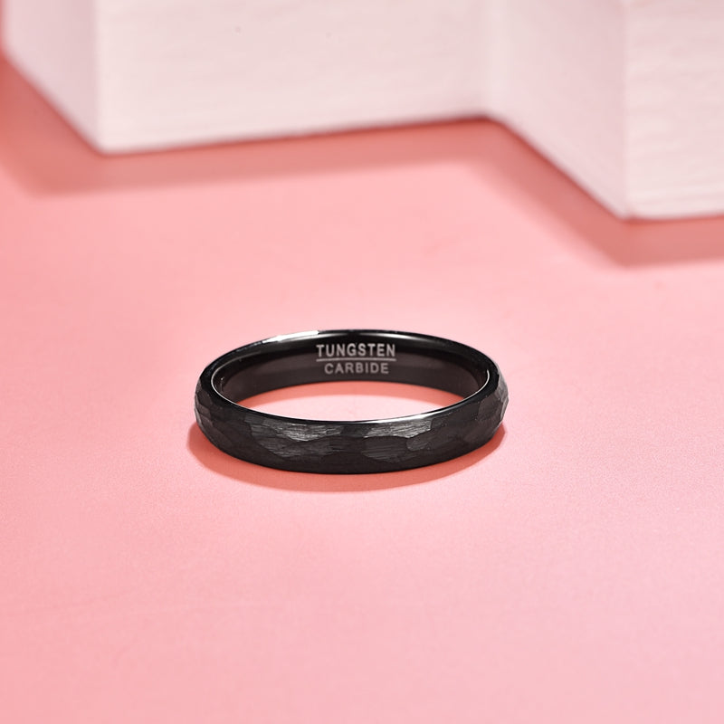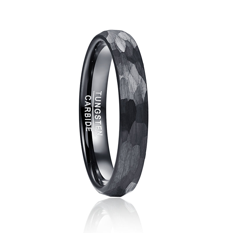 This men's tungsten carbide ring features a 4mm width and is hand-faceted for a unique look. Available in sizes 5-12.