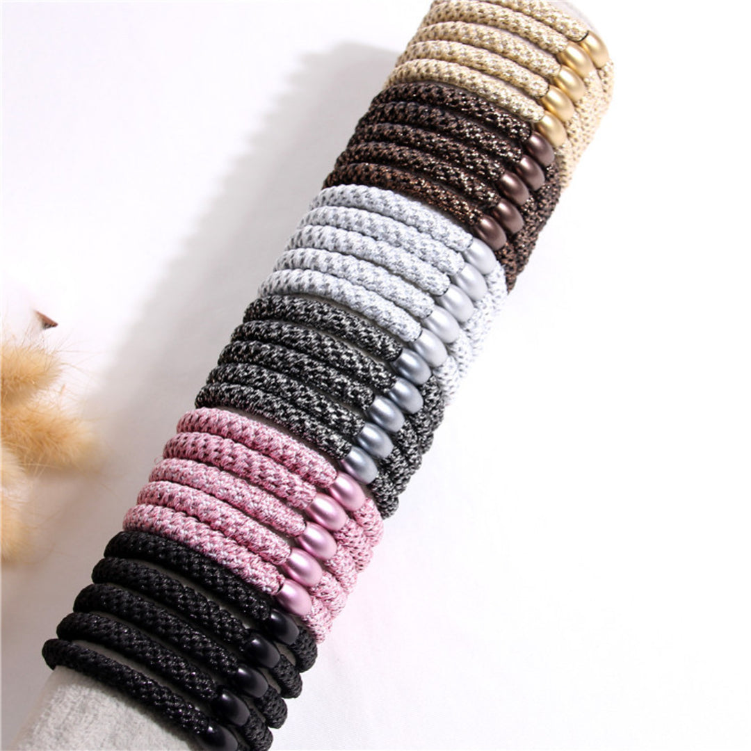 Enhance your hairstyle with this set of 4 classic braided leather rope hair bands. Made of high-quality materials, these bands provide a stylish and elegant touch to your look.