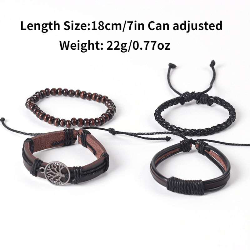 Enhance your style with this set of 4 stylish leather bracelets for men. Each bracelet is made of high-quality leather and features an adjustable design for a comfortable fit.