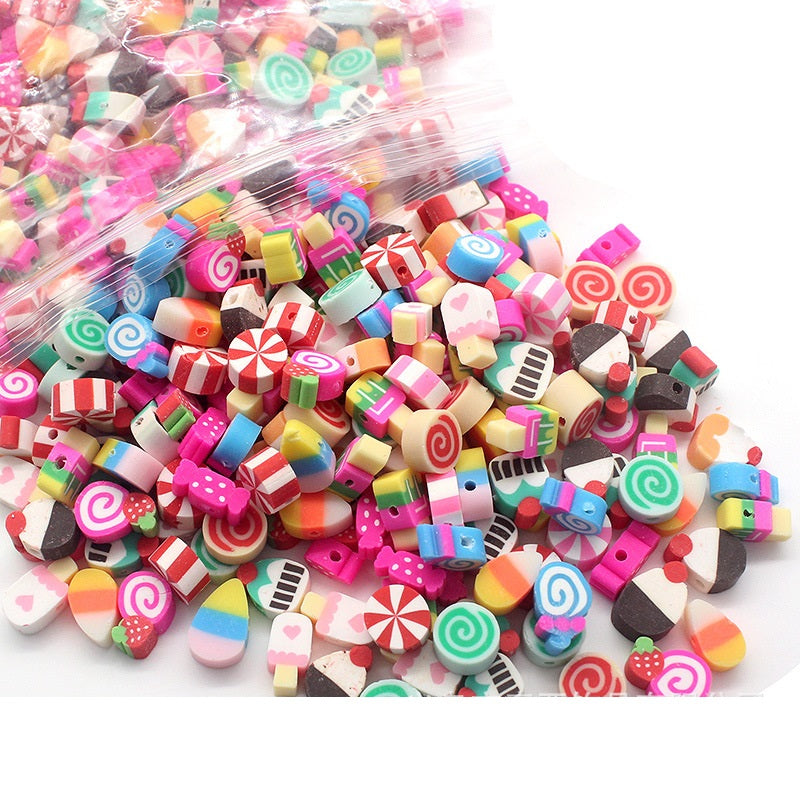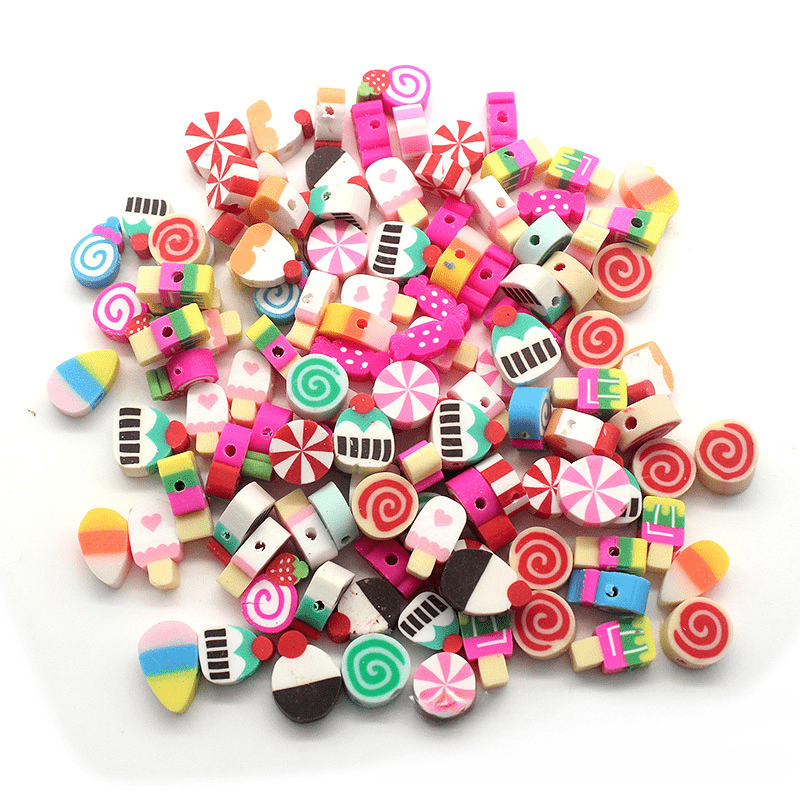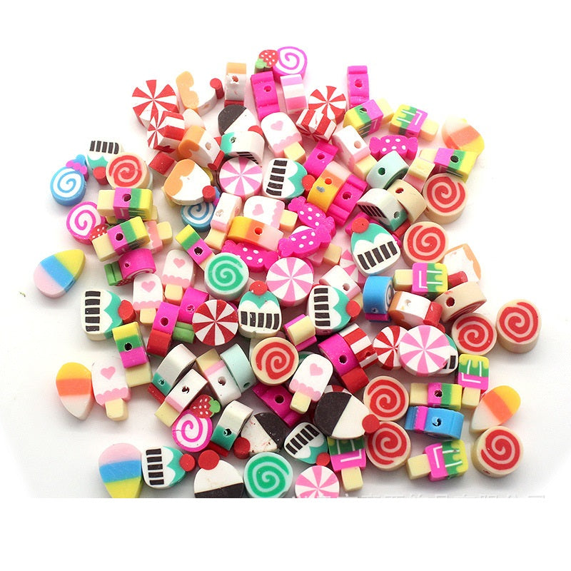50pcs 10mm Polymer Clay Beads Popsicle Ice Cream DIY Bracelet Necklace