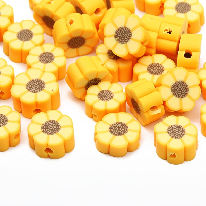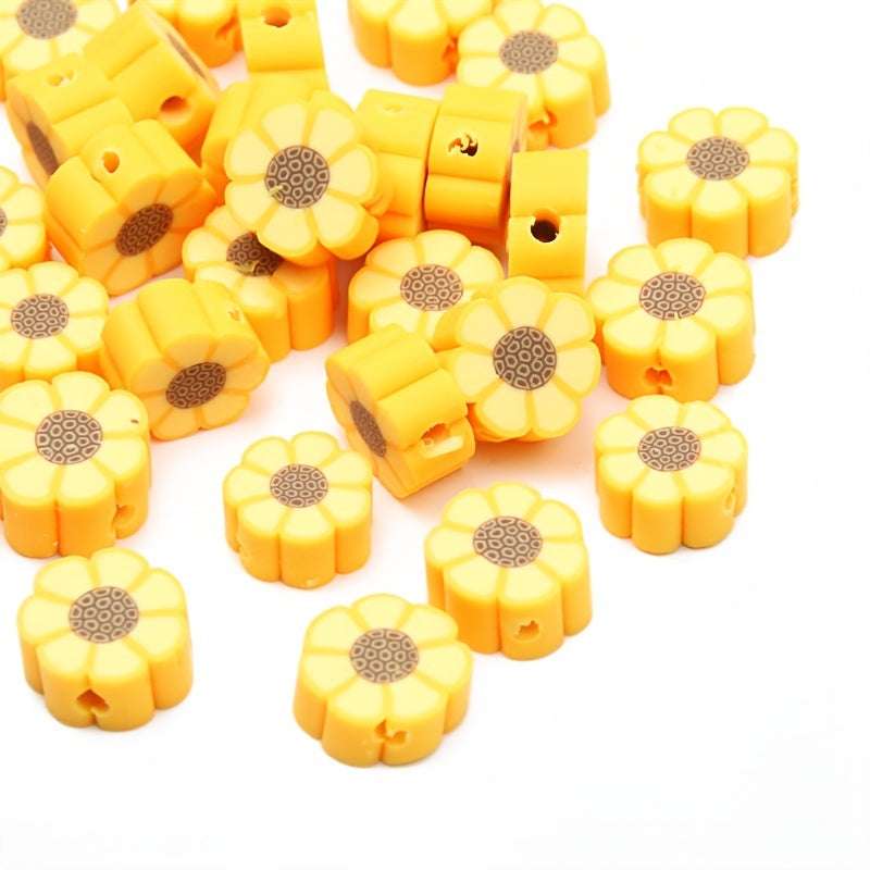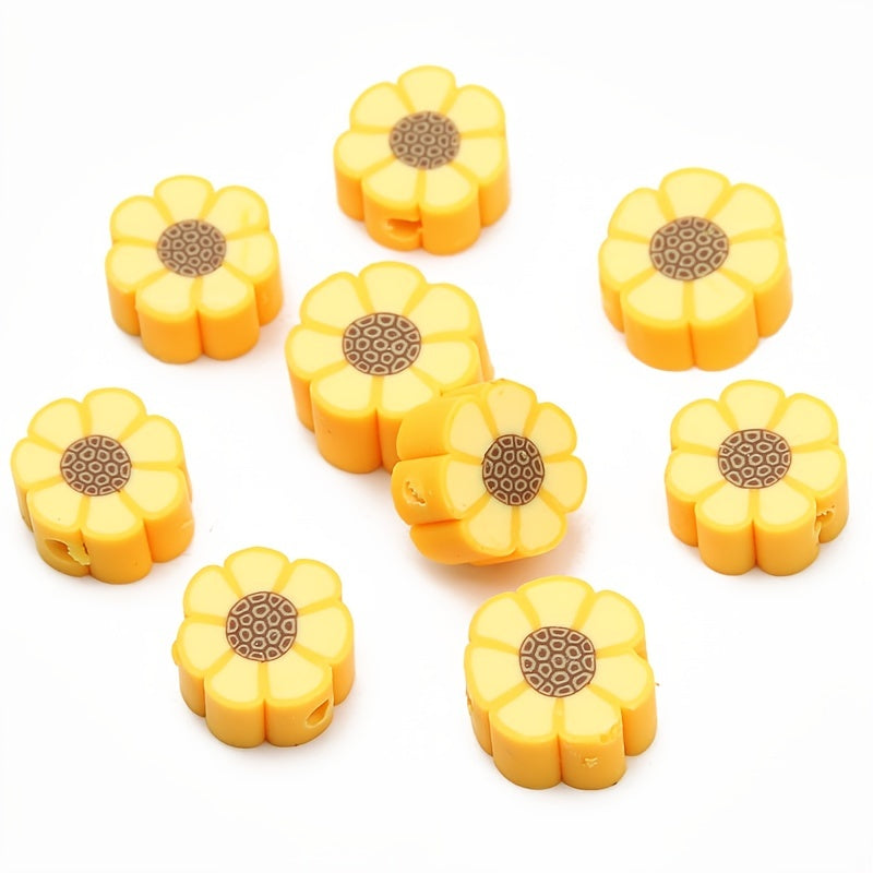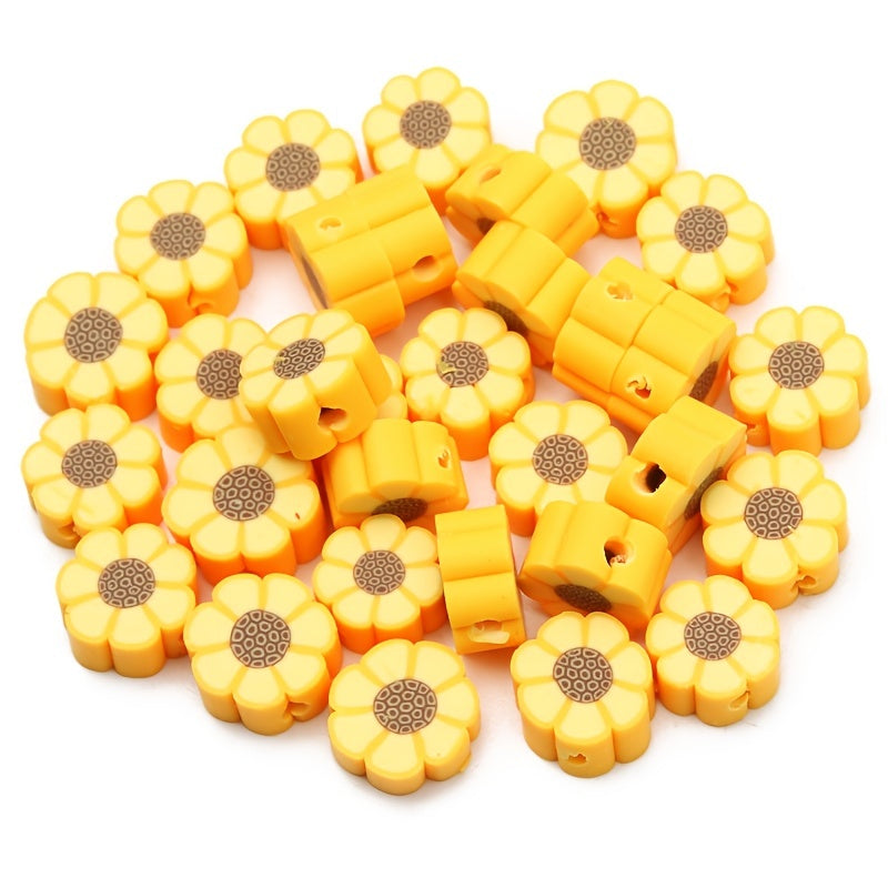 Create beautiful jewelry with these 10mm yellow sunflower beads. Perfect for making bracelets, necklaces, and other DIY projects. The soft pottery material adds a unique touch to your designs.