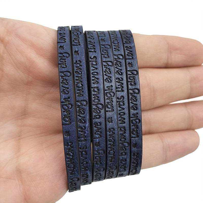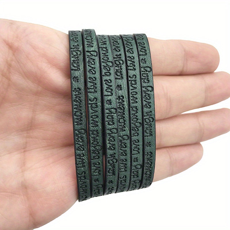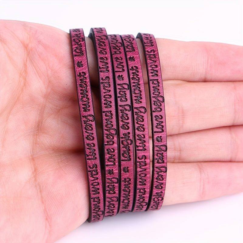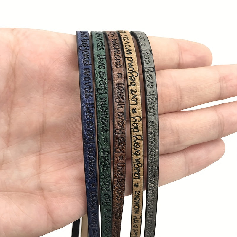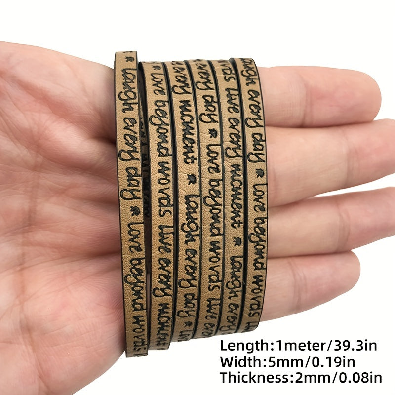 This 5mm Flat PU Leather Cord with Embossed Lettering LAUGH EVERY is perfect for making bracelets. Ideal for both women and men.