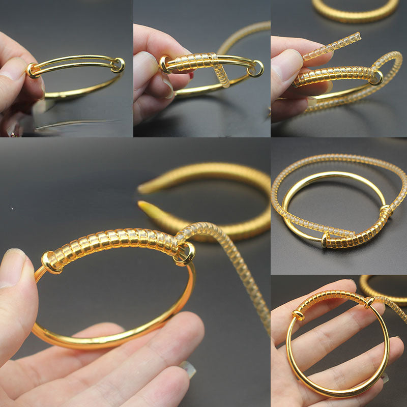 Get 5 PU material bangle protective covers in telephone wire shape to easily adjust ring sizes and protect your fingers.