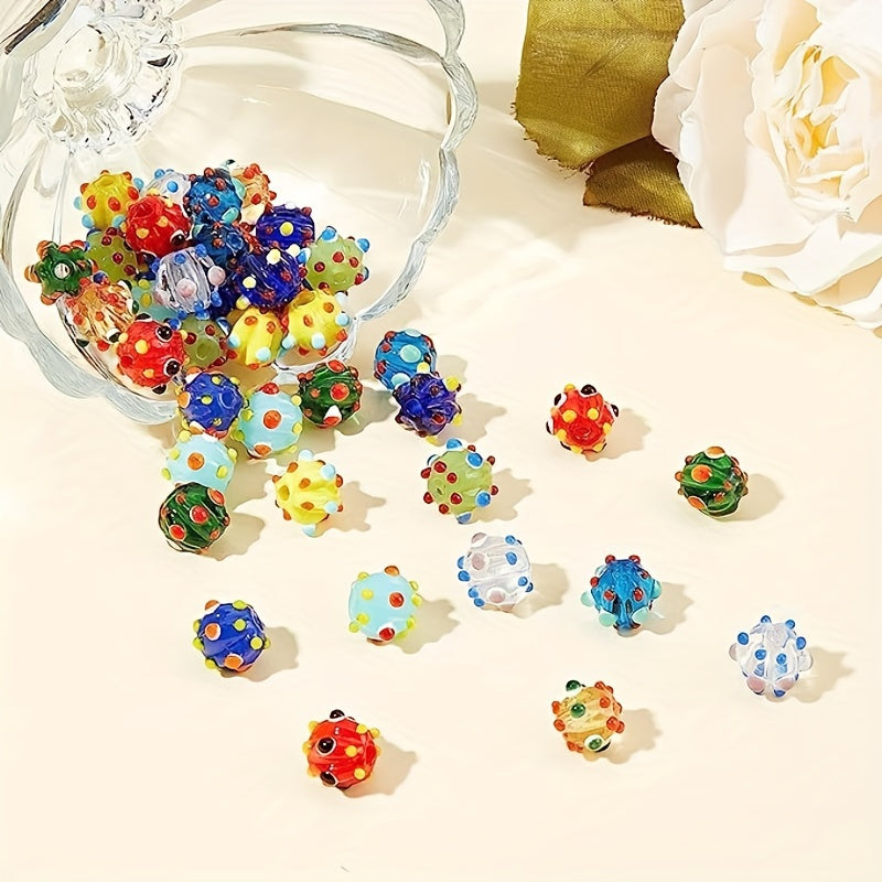 Add a touch of color to your DIY jewelry projects with these pumpkin shaped glass beads. Perfect for making earrings, bracelets, necklaces, and other crafts.