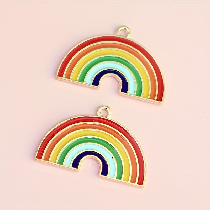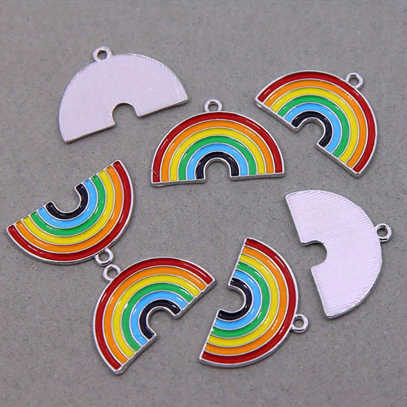 These colorful rainbow enamel pendants are perfect for making your own jewelry, such as earrings and necklaces. The silver and golden alloy charms add a touch of elegance to your accessories.
