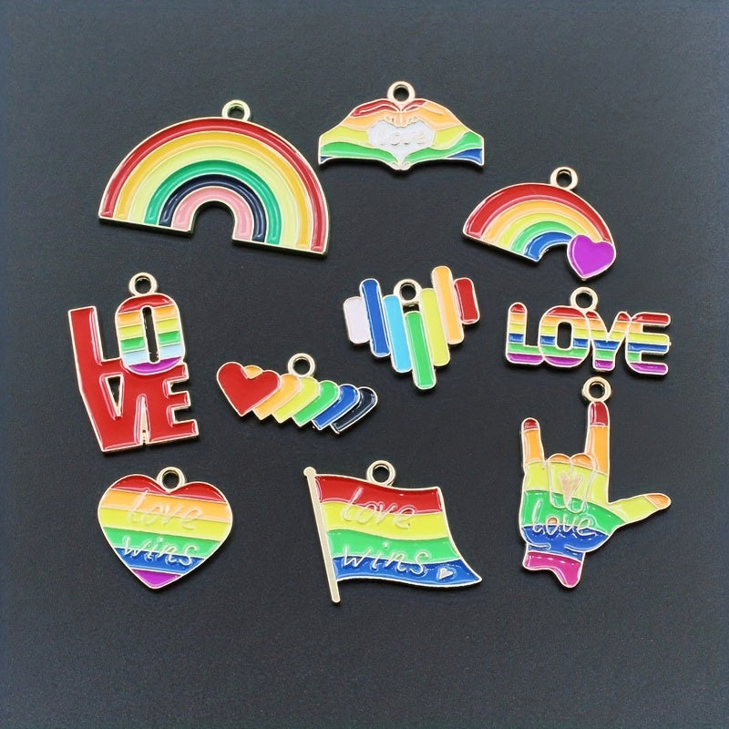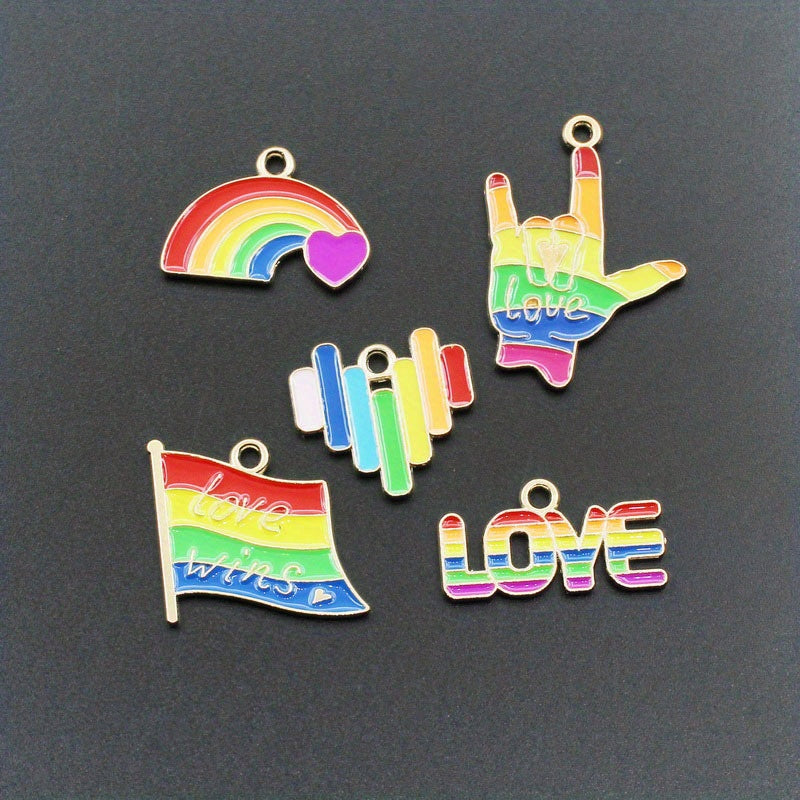 Embrace your pride with these alloy metal gesture rainbow charms. Perfect for bracelets, necklaces, and earrings!