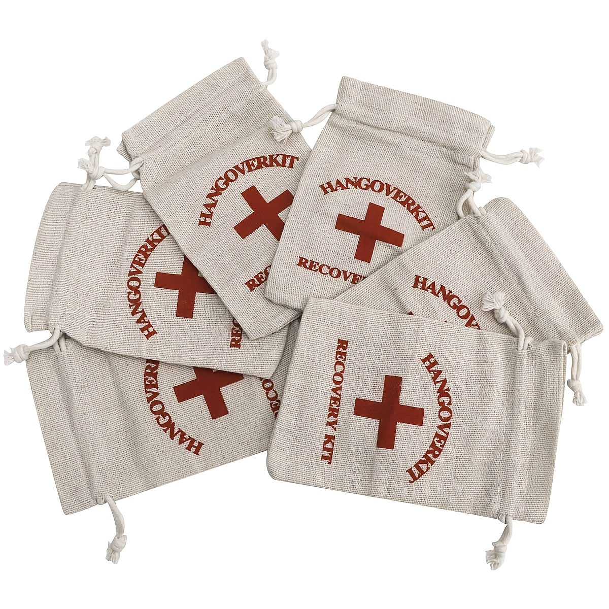 These red cross drawstring packs are perfect for weddings, parties, and events. Use them to create hangover kits, sobriety packs, first aid kits, or gift bags.