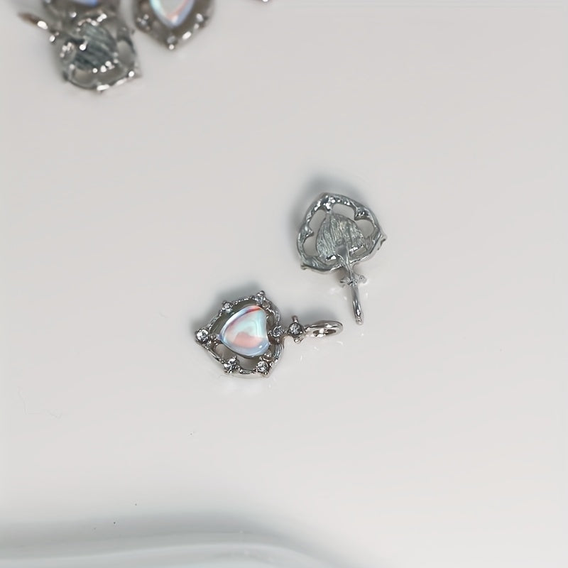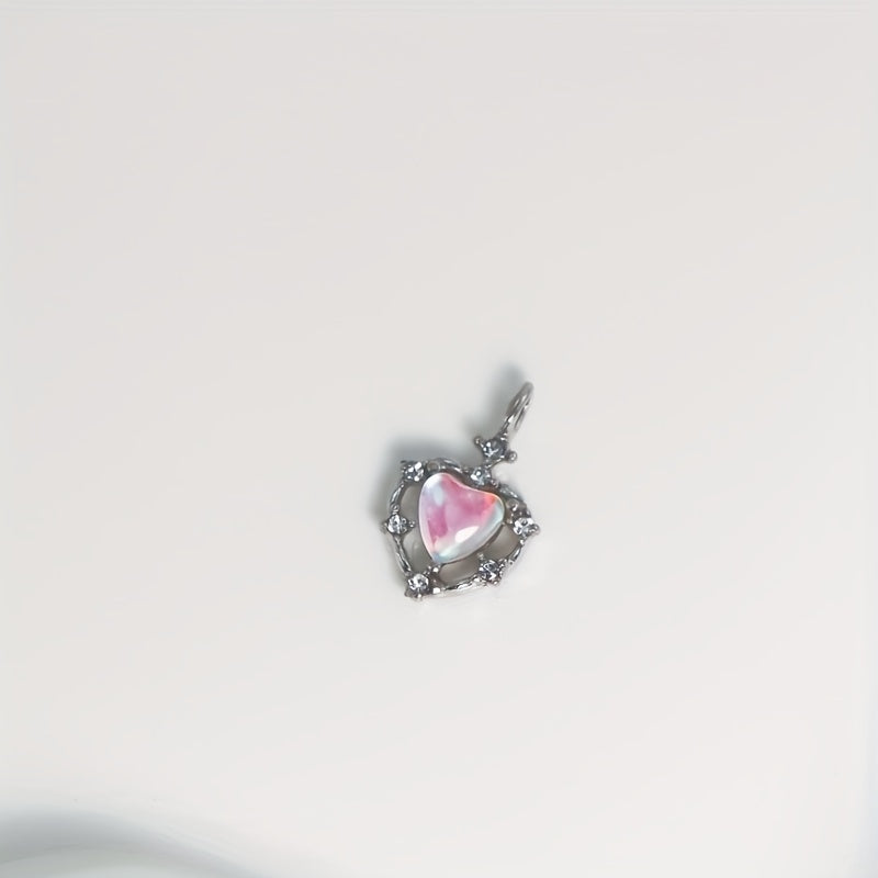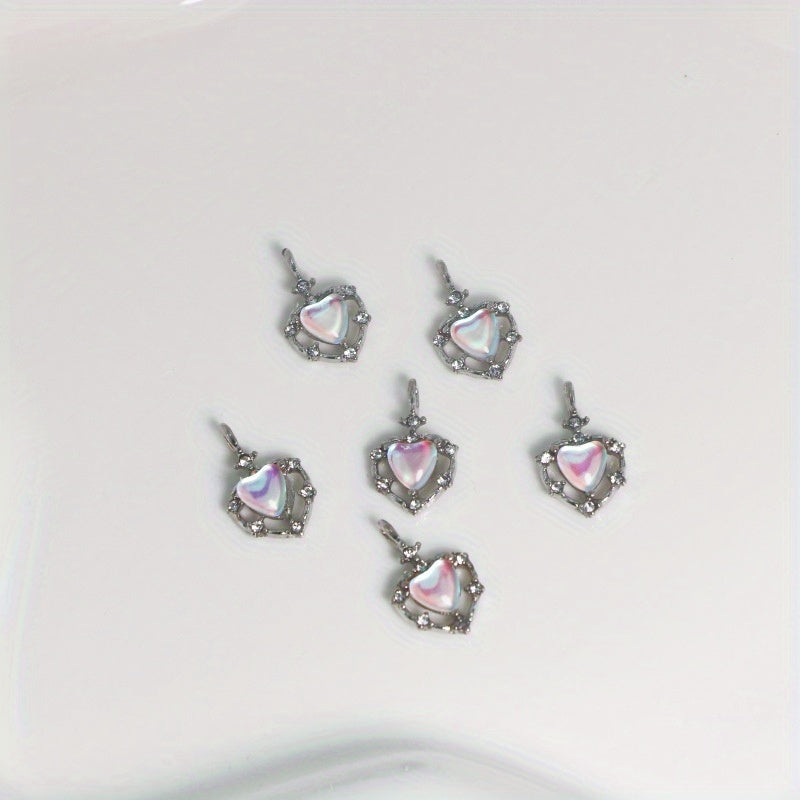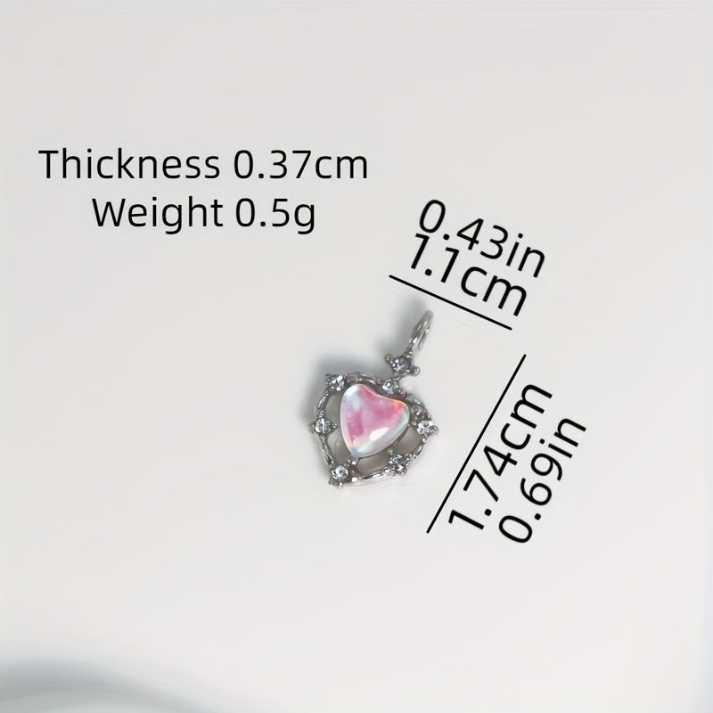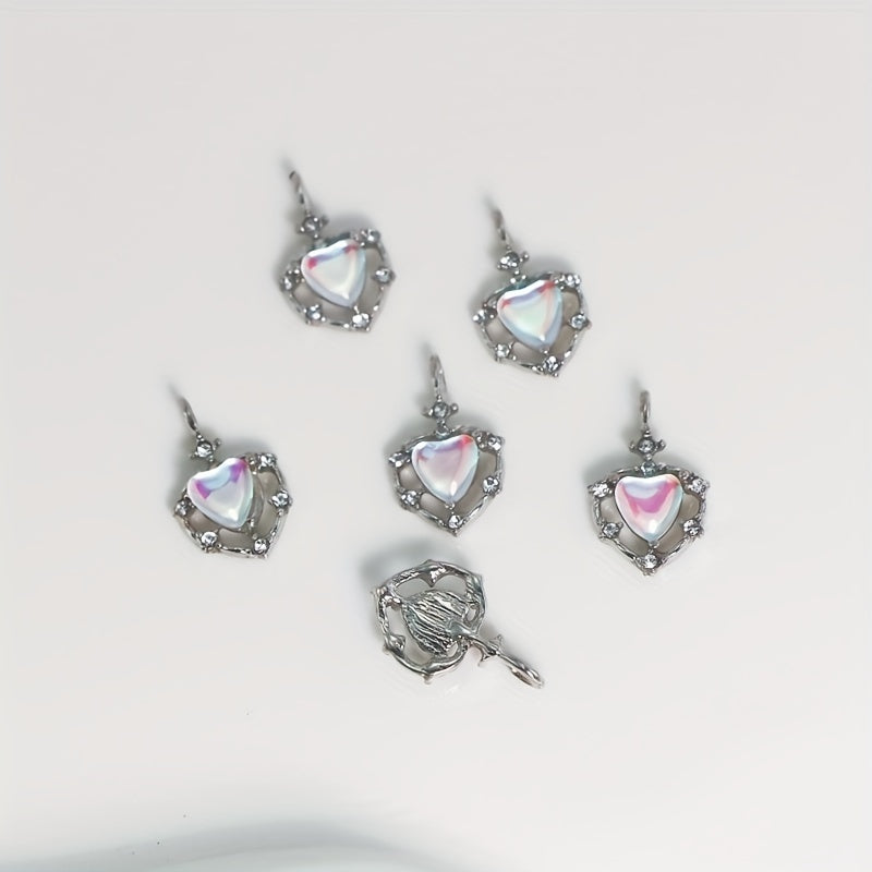 Enhance your jewelry making with these 5pcs heart-shaped hollow alloy pendants featuring rhinestone and opal decorations. Perfect for creating earrings, bracelets, necklaces, and more!