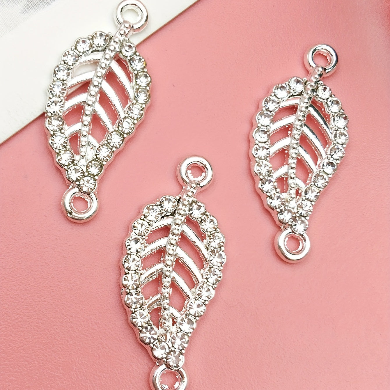 Enhance your jewelry making projects with these elegant silver leaf rhinestone pendants. Perfect for DIY jewelry crafting, these connectors add a touch of sophistication to your creations.