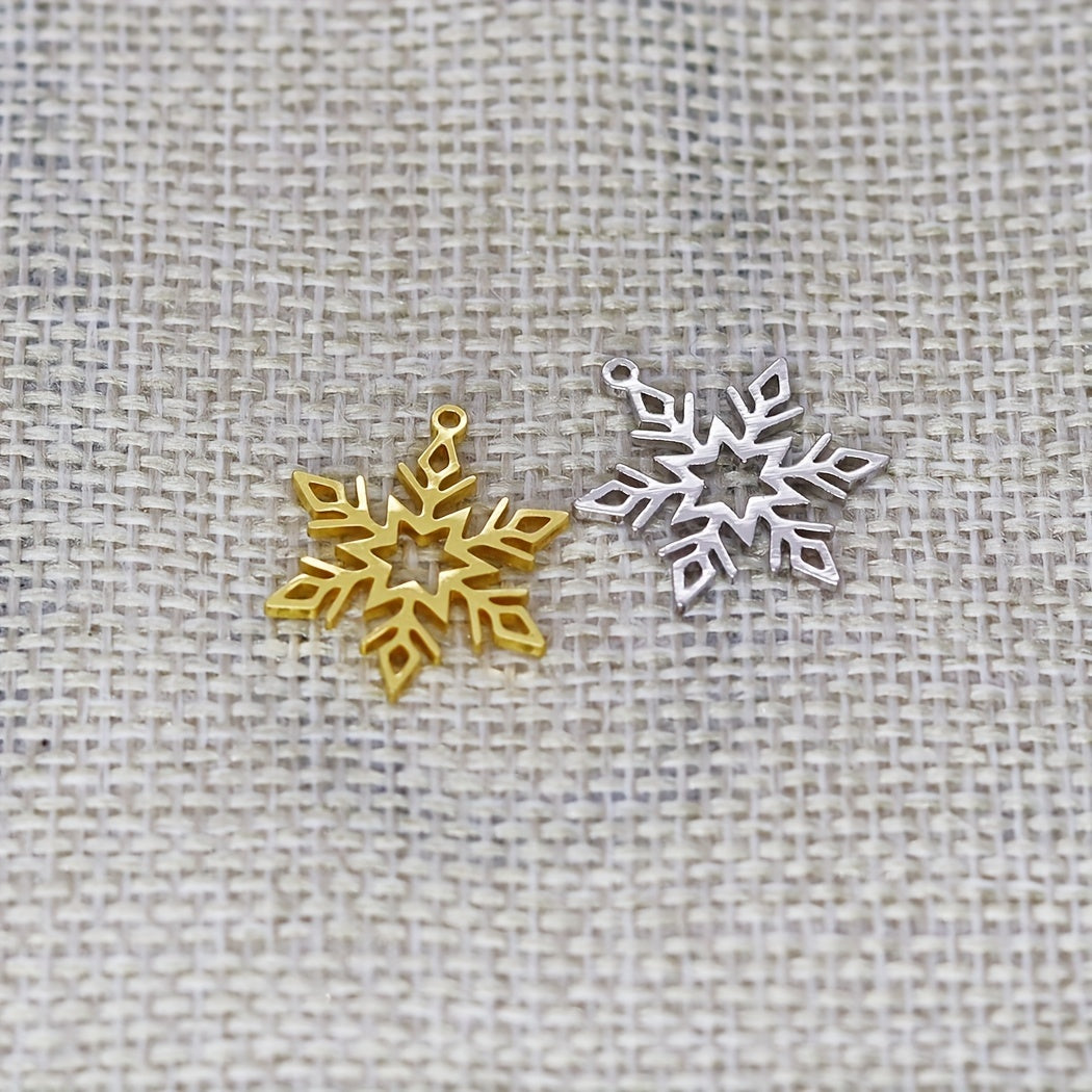 Add a touch of winter charm to your crafts with these stainless steel snowflake pendants. Perfect for necklaces, bracelets, and other jewelry projects during the cold winter season.