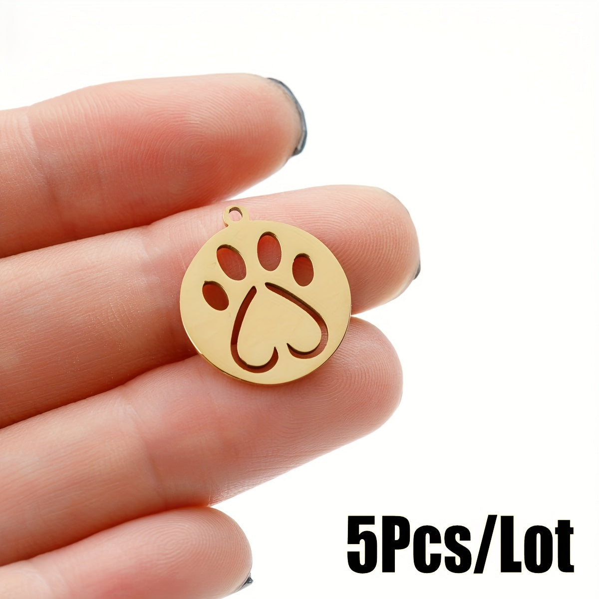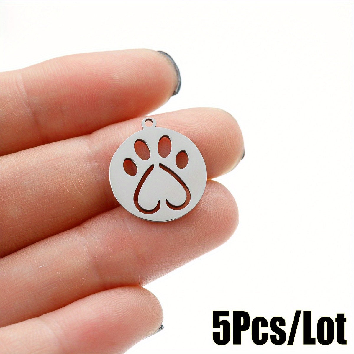 • Set of 5 stainless steel dog paw print charms