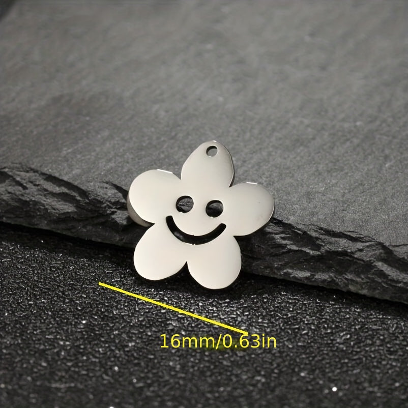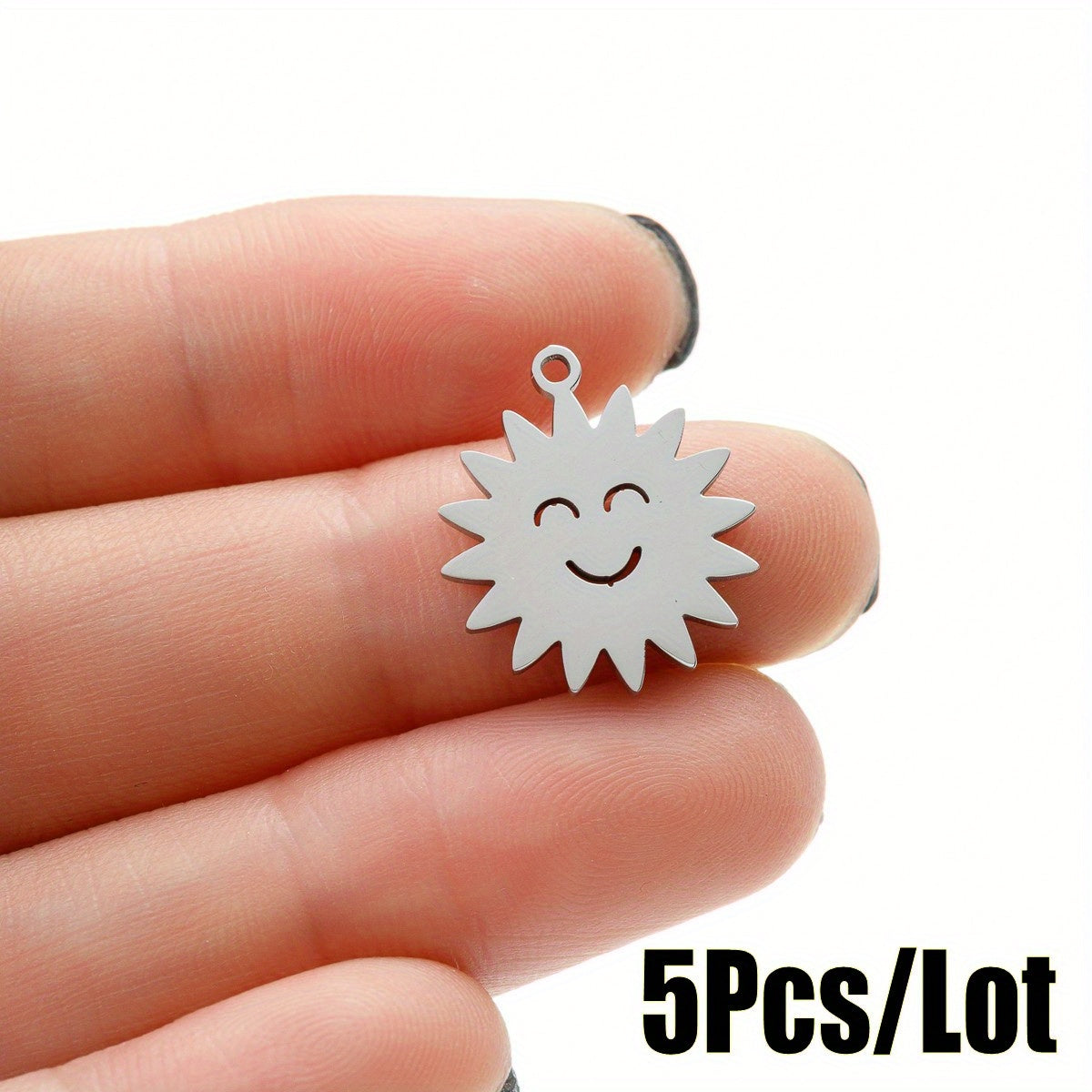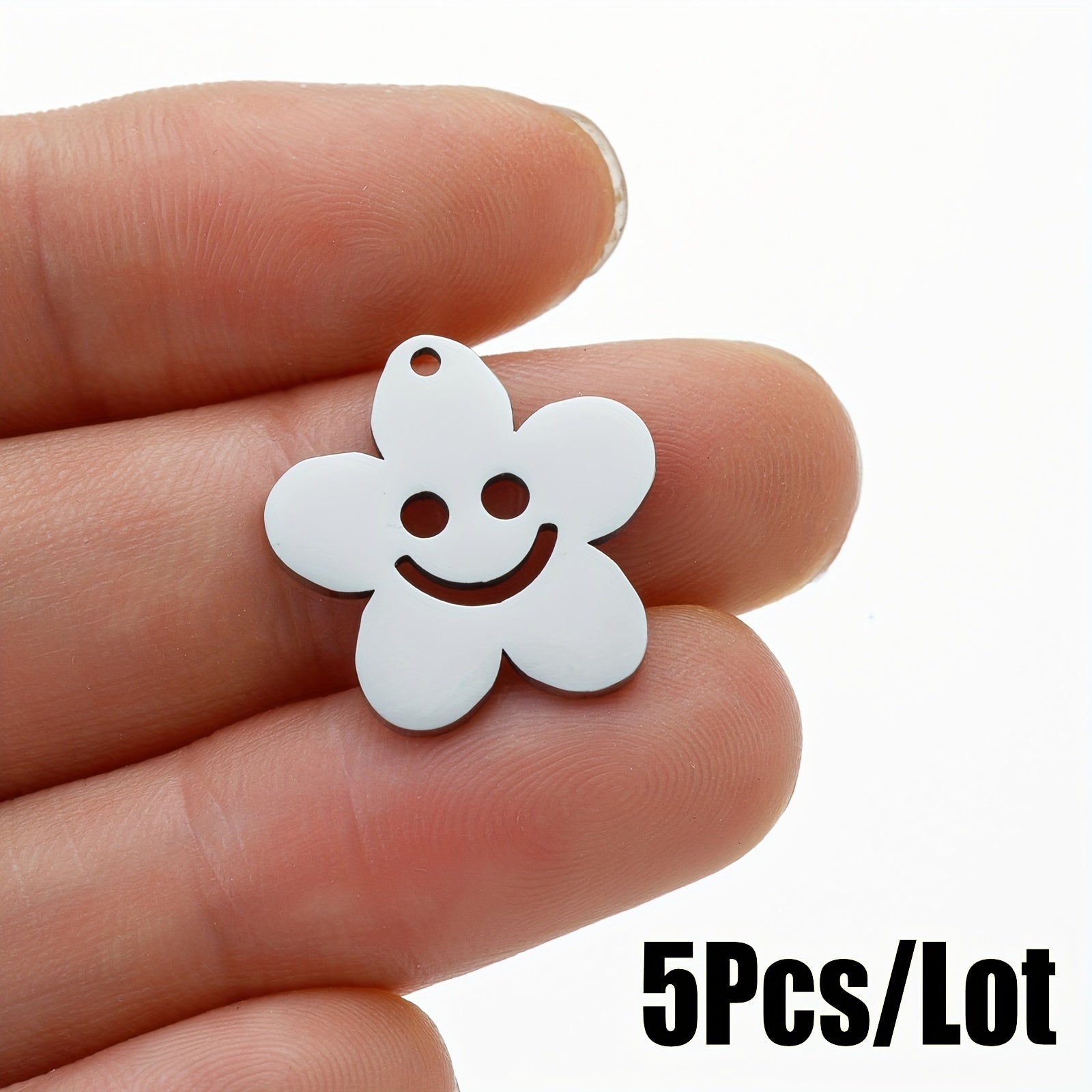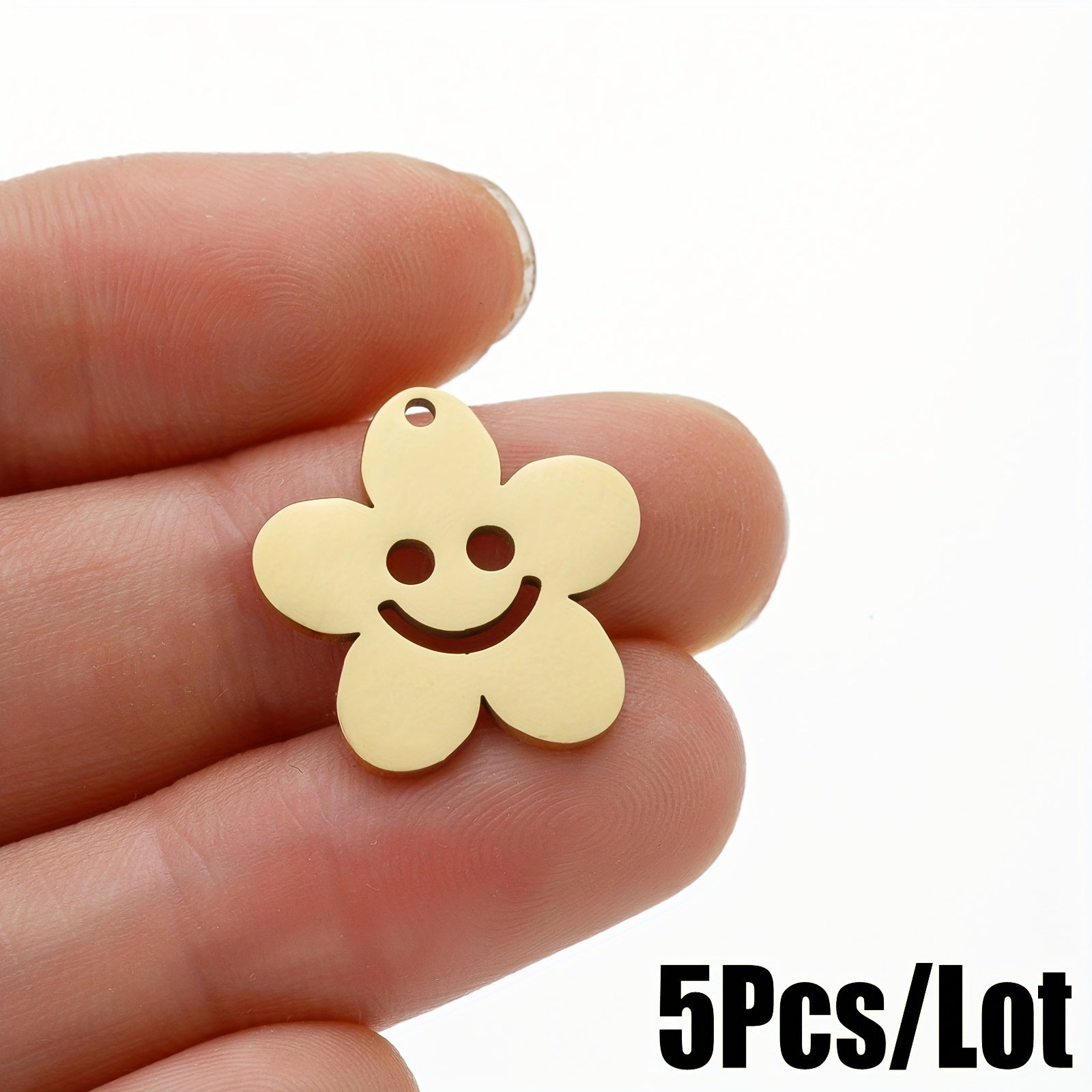 This set includes 5pcs of stainless steel pendants featuring happy face flowers or sun designs. Perfect for creating your own earrings, bracelets, necklaces, and other accessories.
