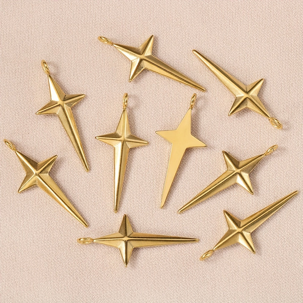 Add a touch of elegance with these stainless steel star pendants, perfect for creating your own unique jewelry pieces. The golden or steel finish adds a stylish touch to any necklace or bracelet.