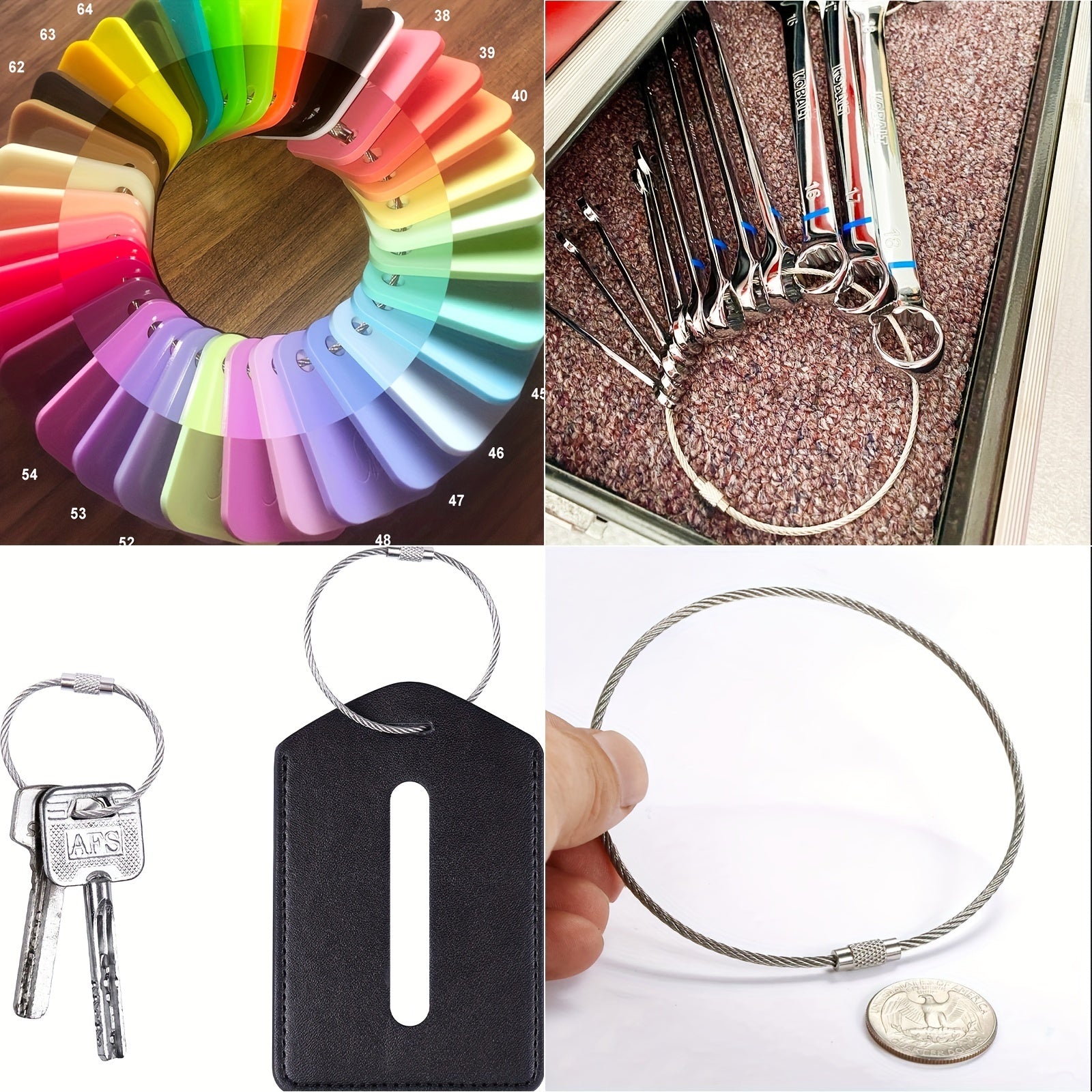 This set includes 5 stainless steel wires that can be used for key chains, luggage tags, or outdoor hiking gear. The durable material ensures reliability in various outdoor activities.