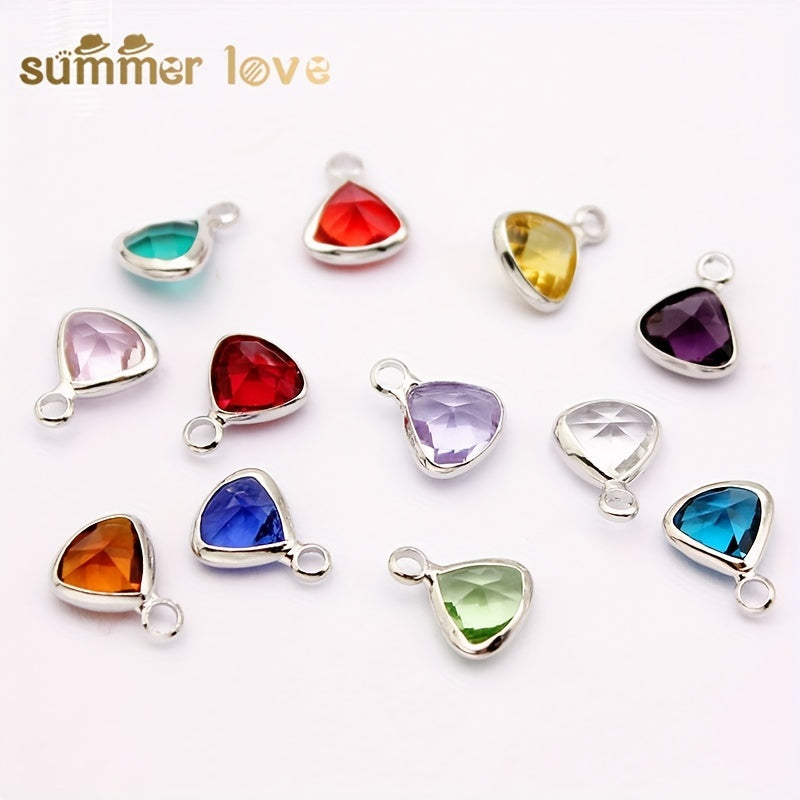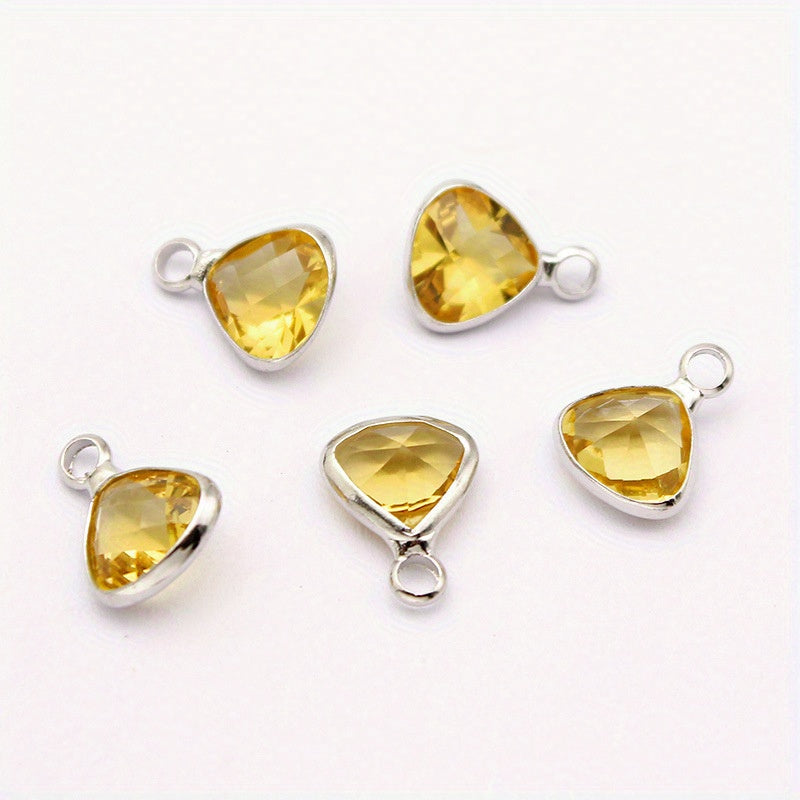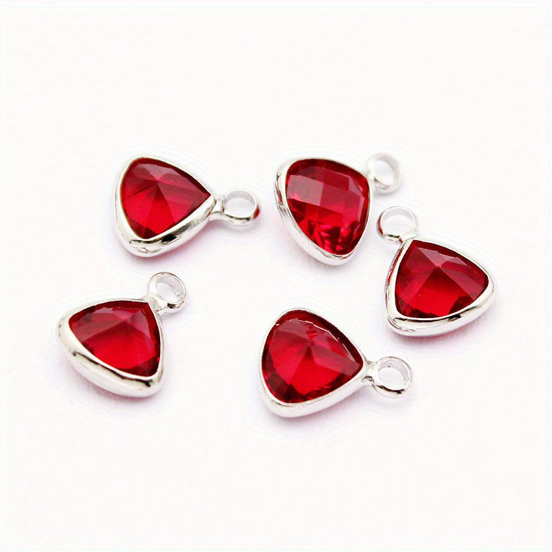 5pcs Triangular Glass Copper Alloy Birthstone Pendant