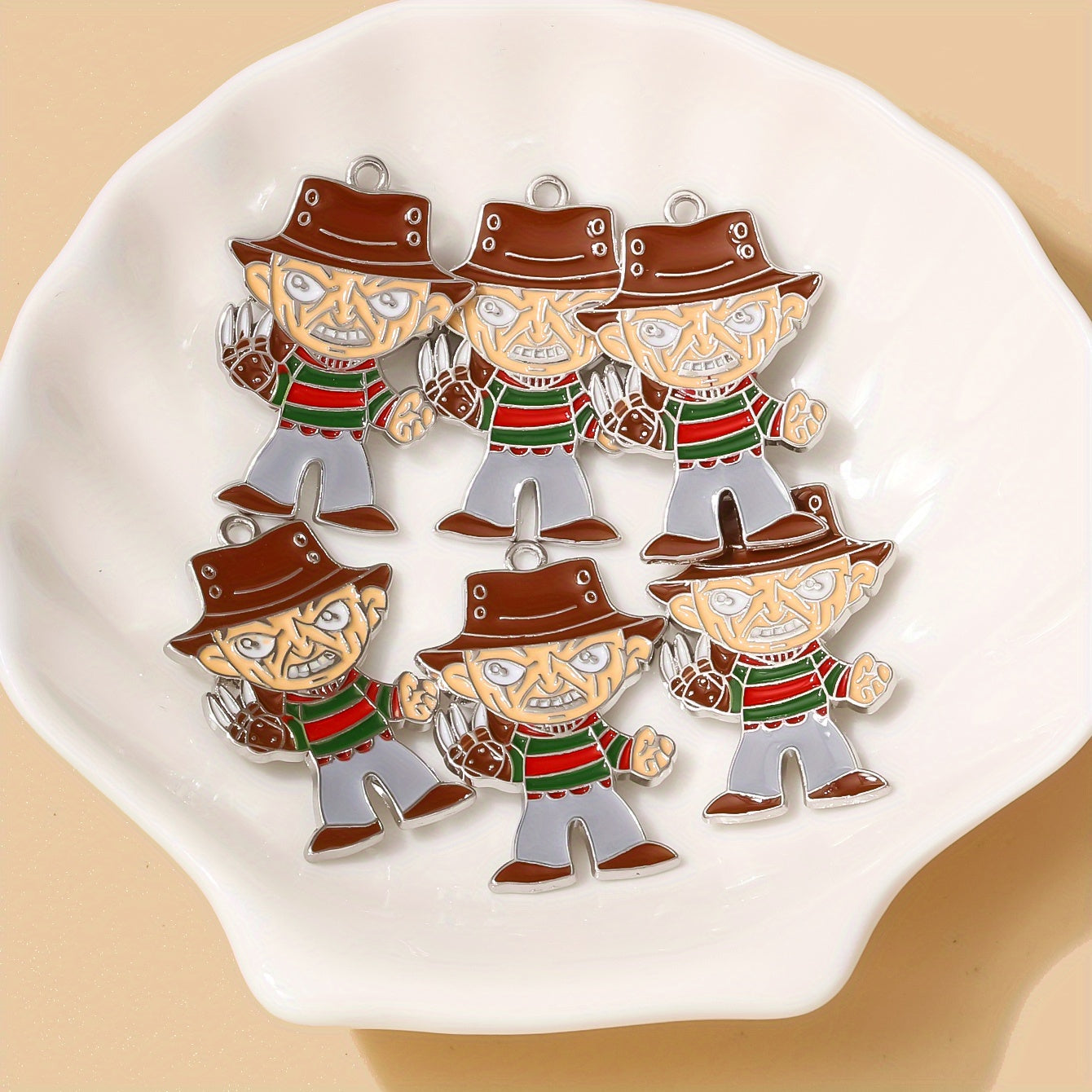 These spooky enamel pendants featuring horrific characters are perfect for creating Halloween-themed jewelry. Use them to make necklaces, bracelets, or other accessories.