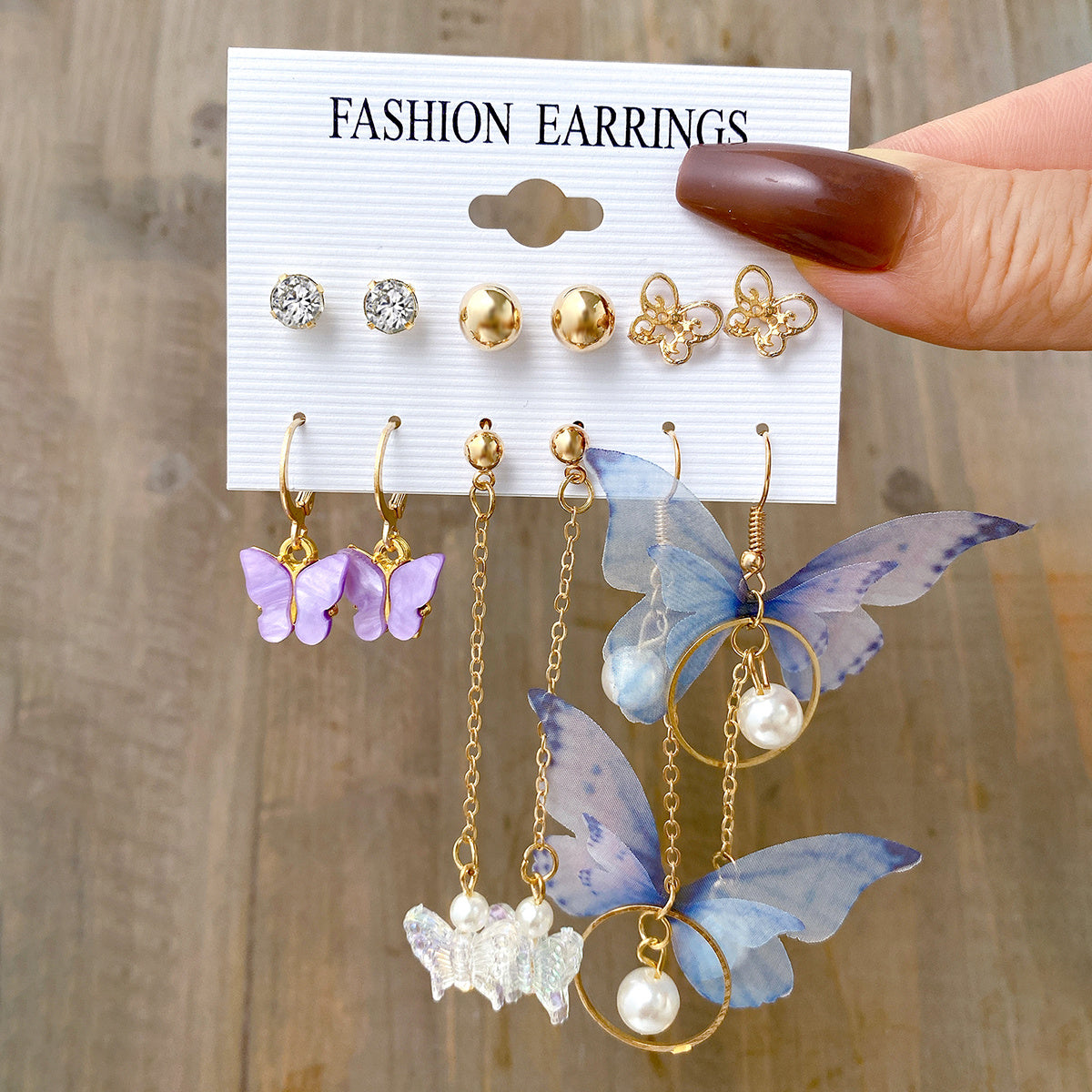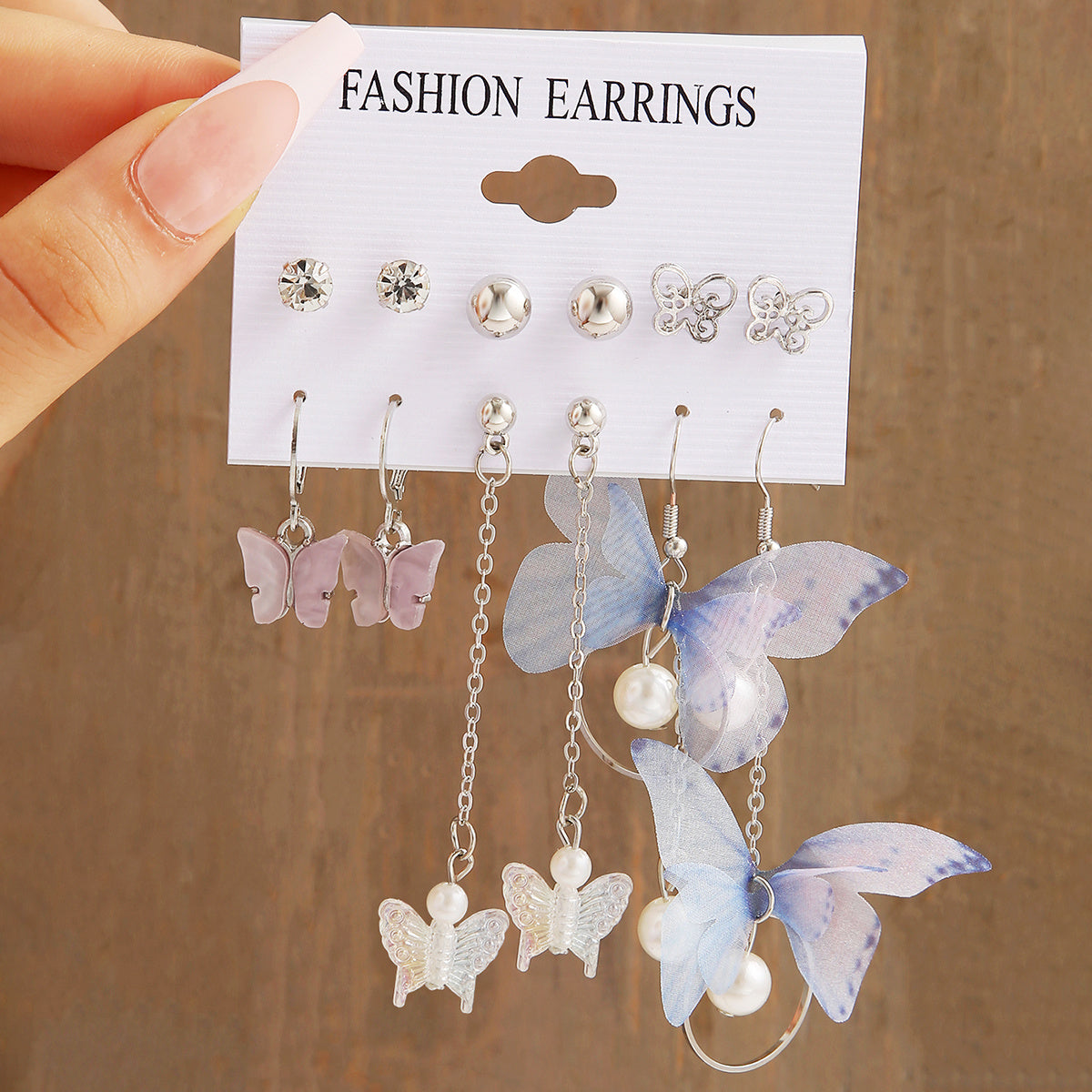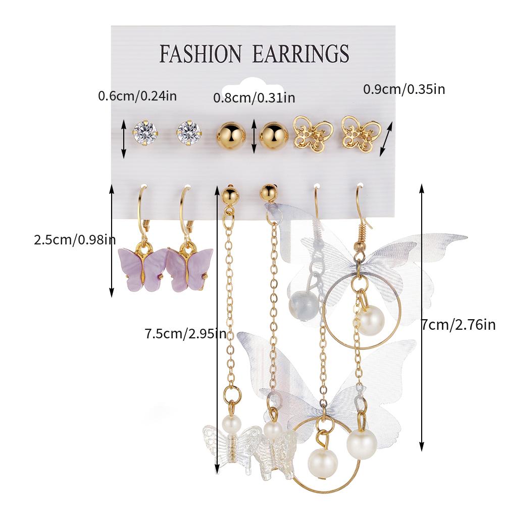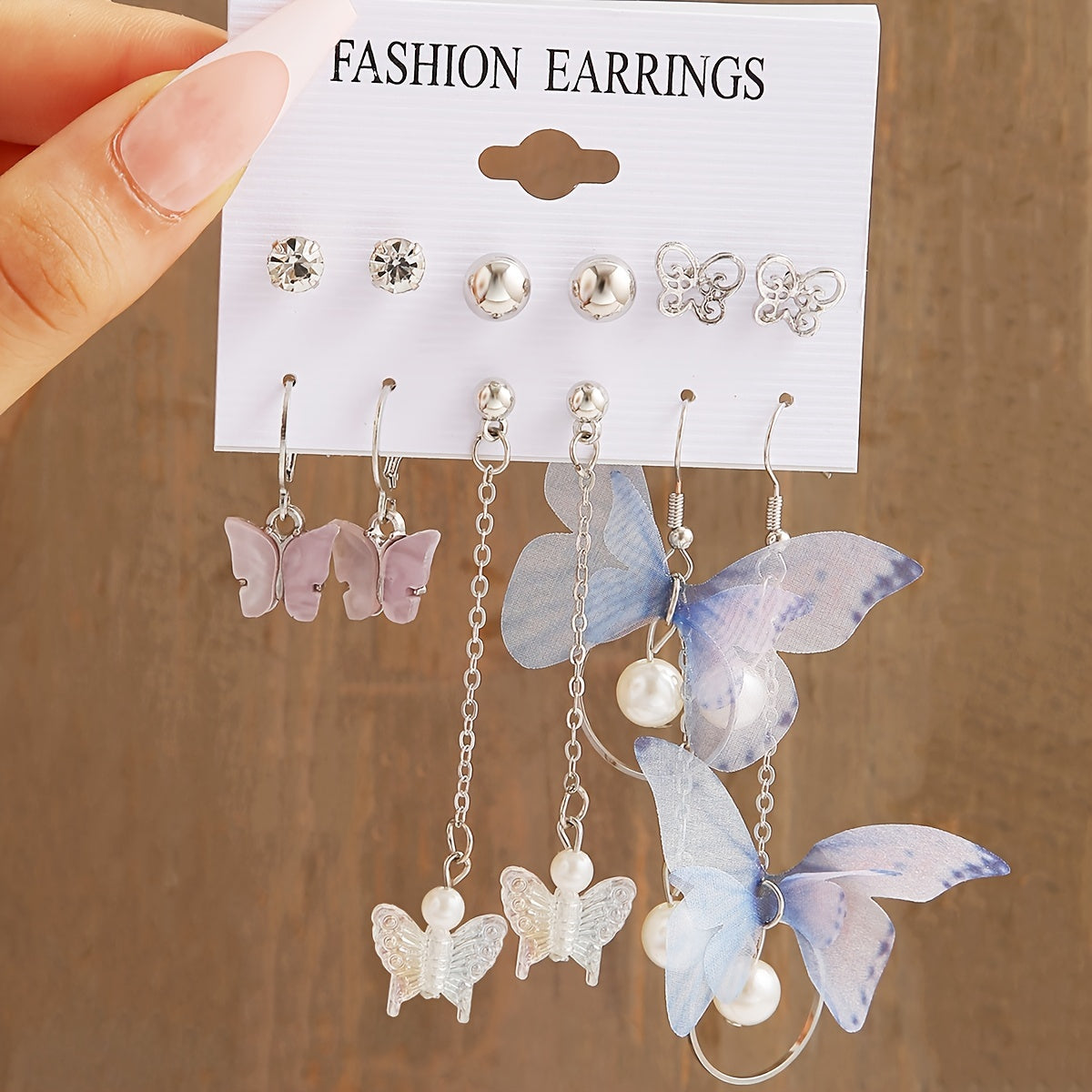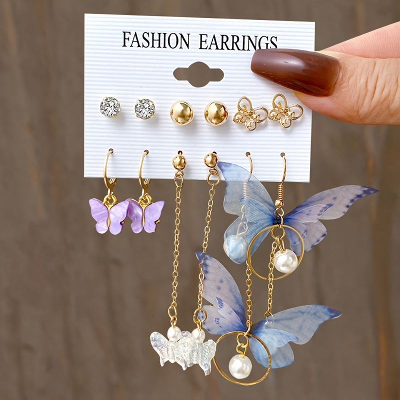 Add a touch of elegance to your outfit with these butterfly pearl earrings. Each set includes 6 pairs of beautifully designed earrings.