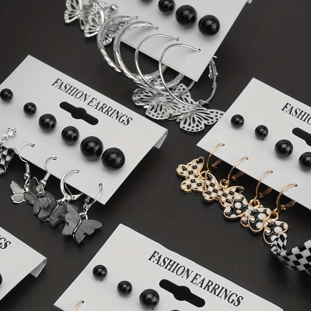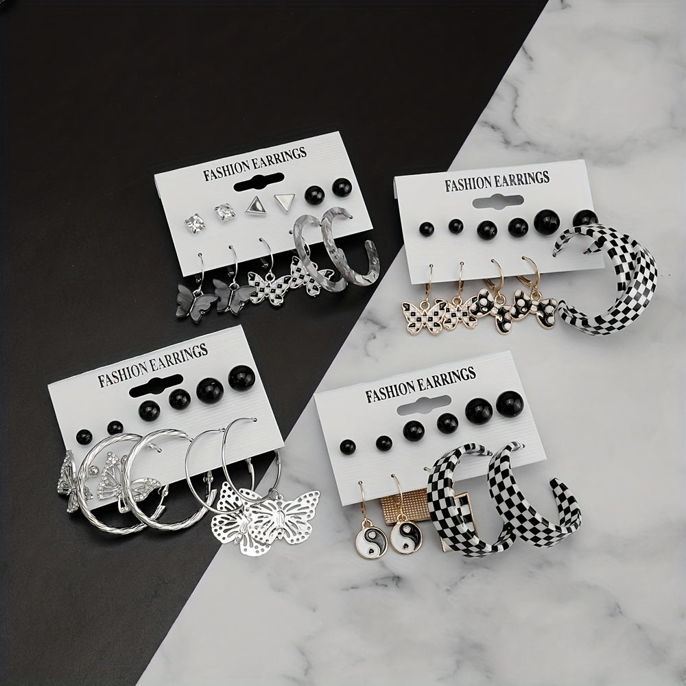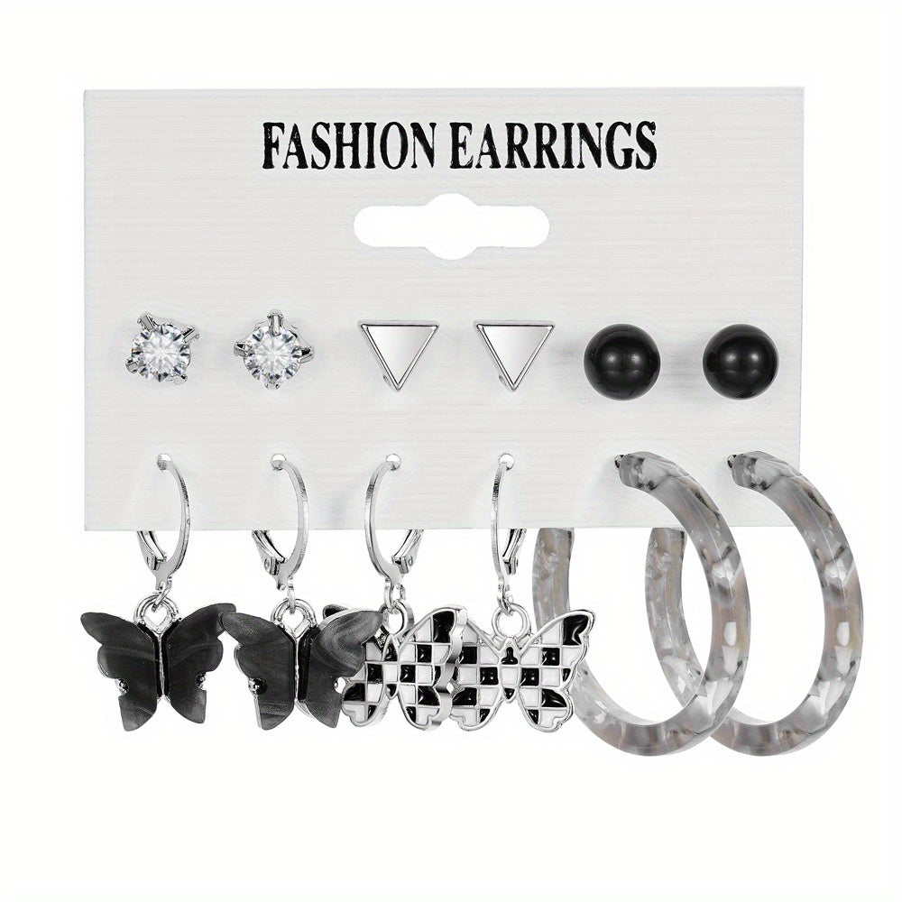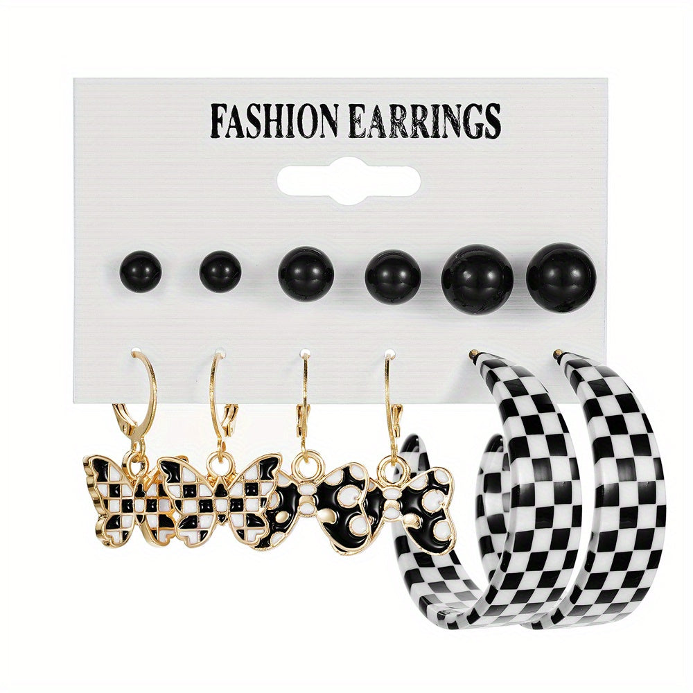 Get this set of 6 pairs of earrings featuring stud and dangle styles with a retro plaid pattern. Perfect gift for women who love classic and vintage accessories.