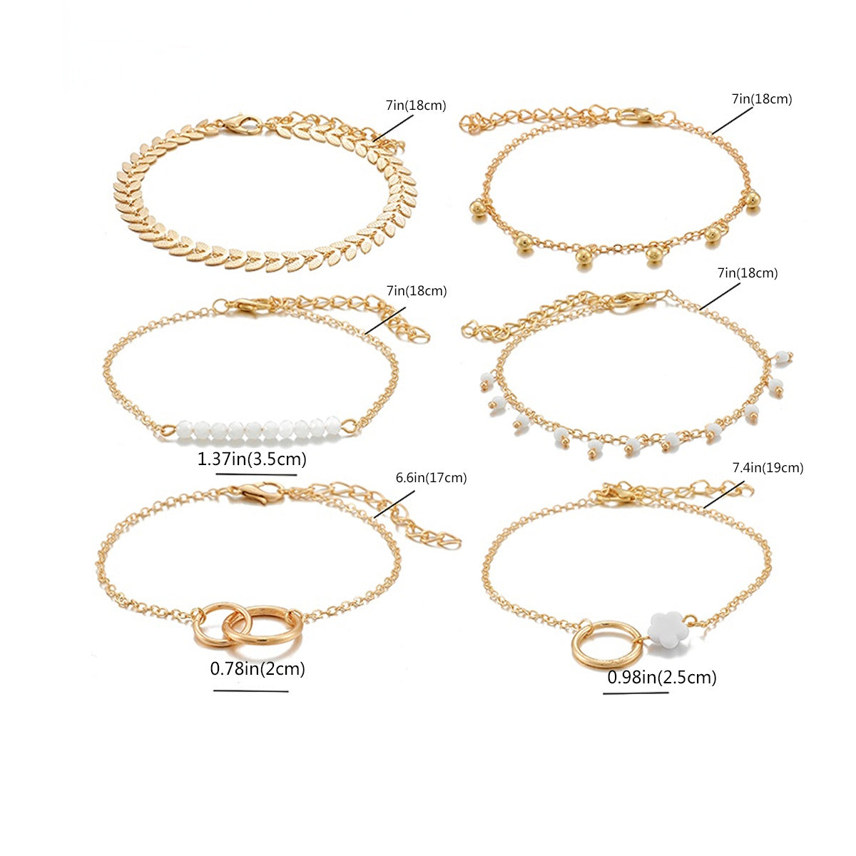 6 Pcs Geometric Chain Bracelet Set Adjustable Tassel Jewelry