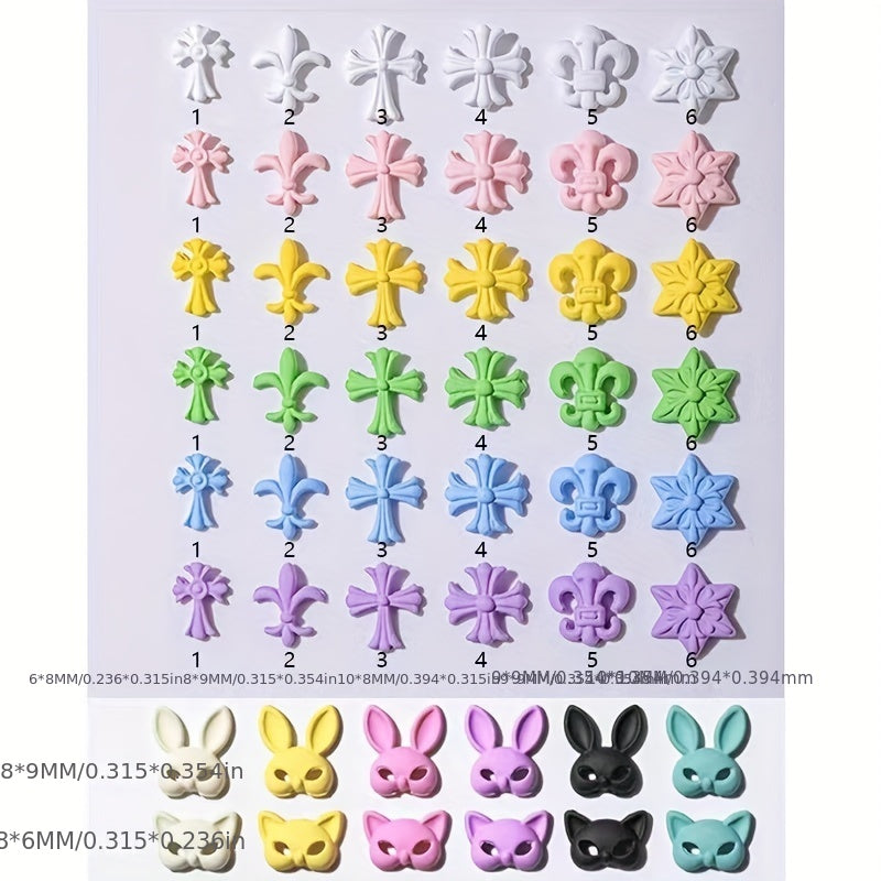 Enhance your nails with this set of 60 cross nail charms in 8 different styles. Featuring vintage animal designs, these metal nail jewels are perfect for adding a touch of creativity to your manicure.
