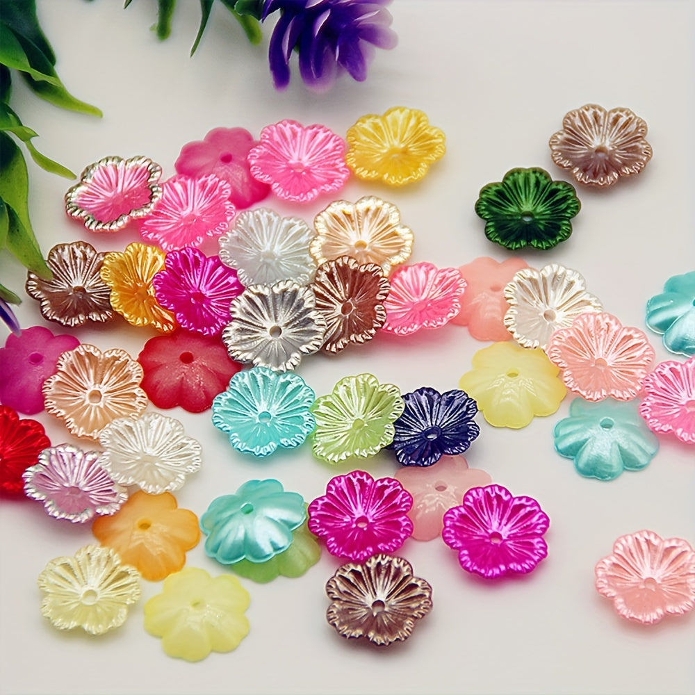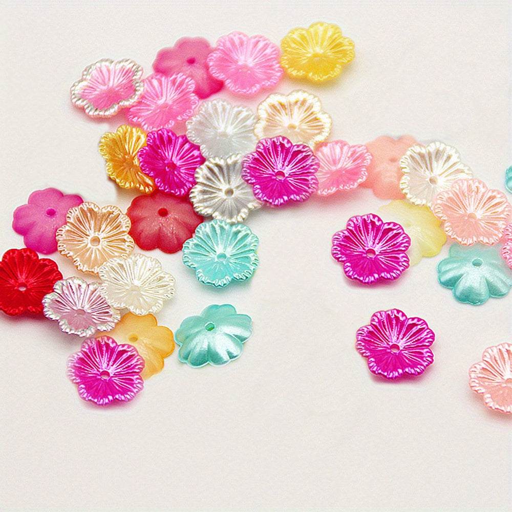 These acrylic spacer beads are perfect for crafting earrings, bracelets, and hairpins. Each bead features a colorful flower pattern.