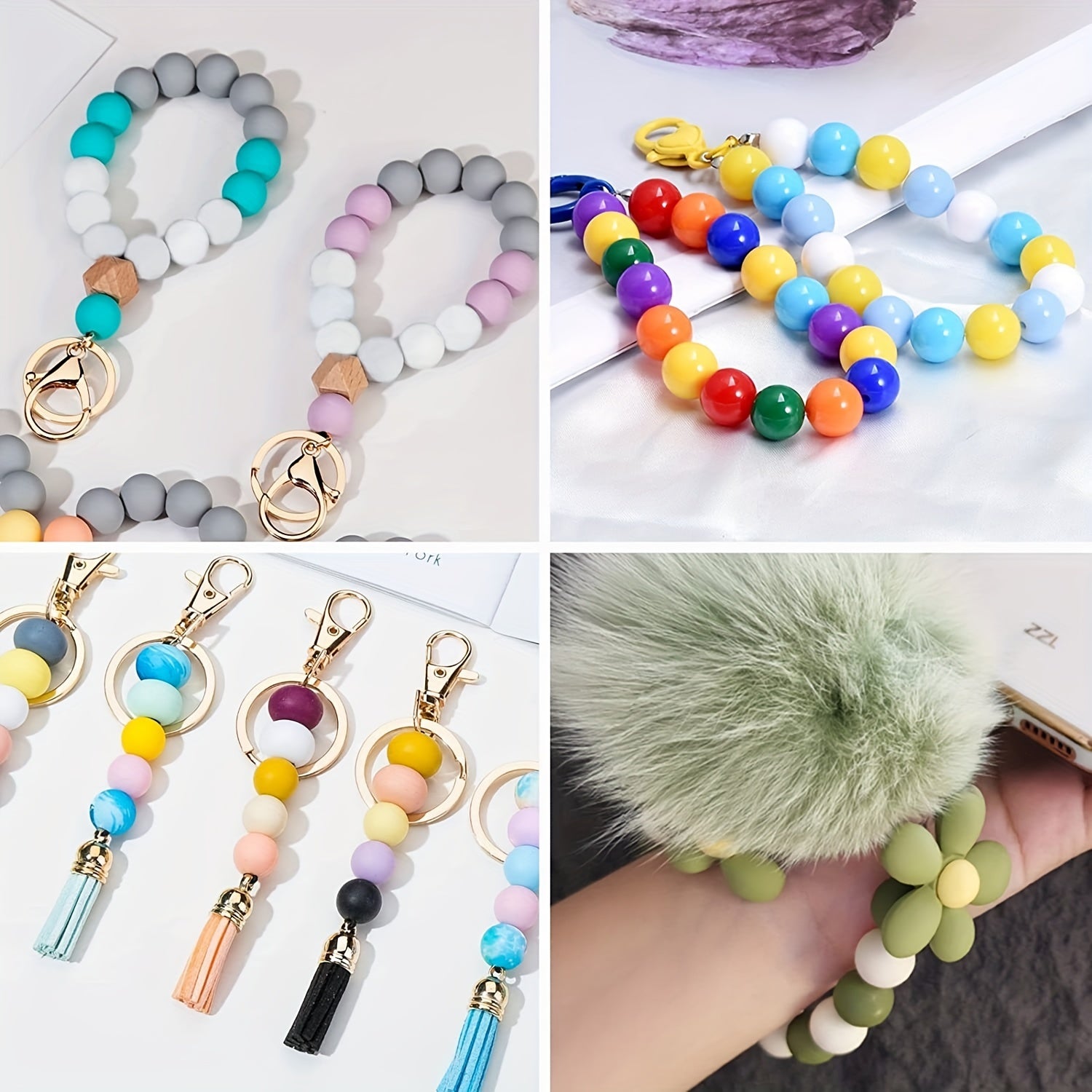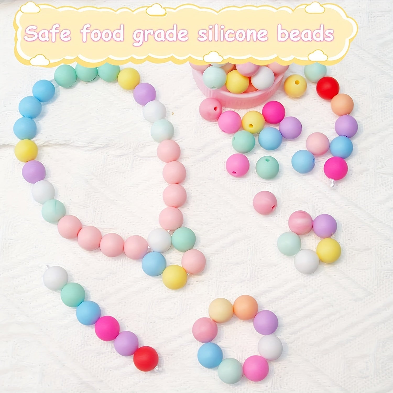 This set includes 60pcs 12mm silicone loose beads that can be used for making baby necklaces, bracelets, wristbands, keychains, pacifier chains, and bead strings. It also comes with beading thread for easy crafting.