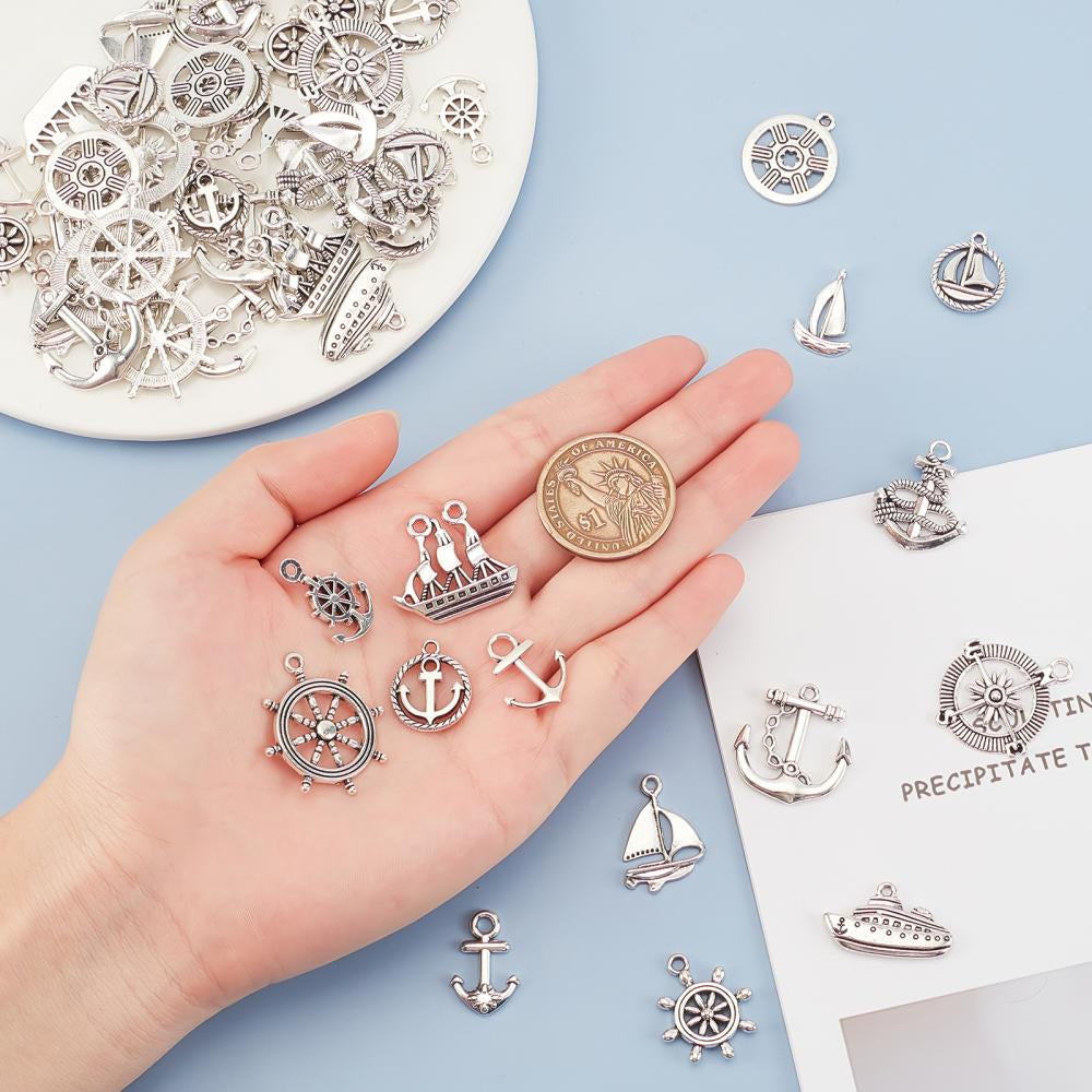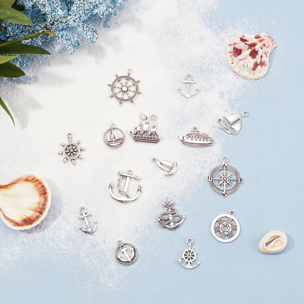Explore your love for ocean and sailing themes with these antique silver alloy pendants. Perfect for making crafts and jewelry supplies.