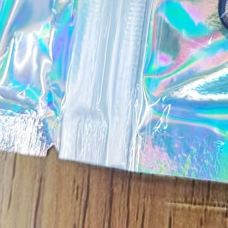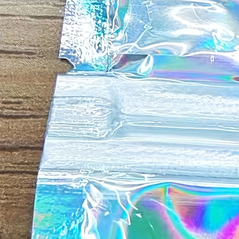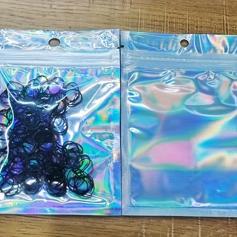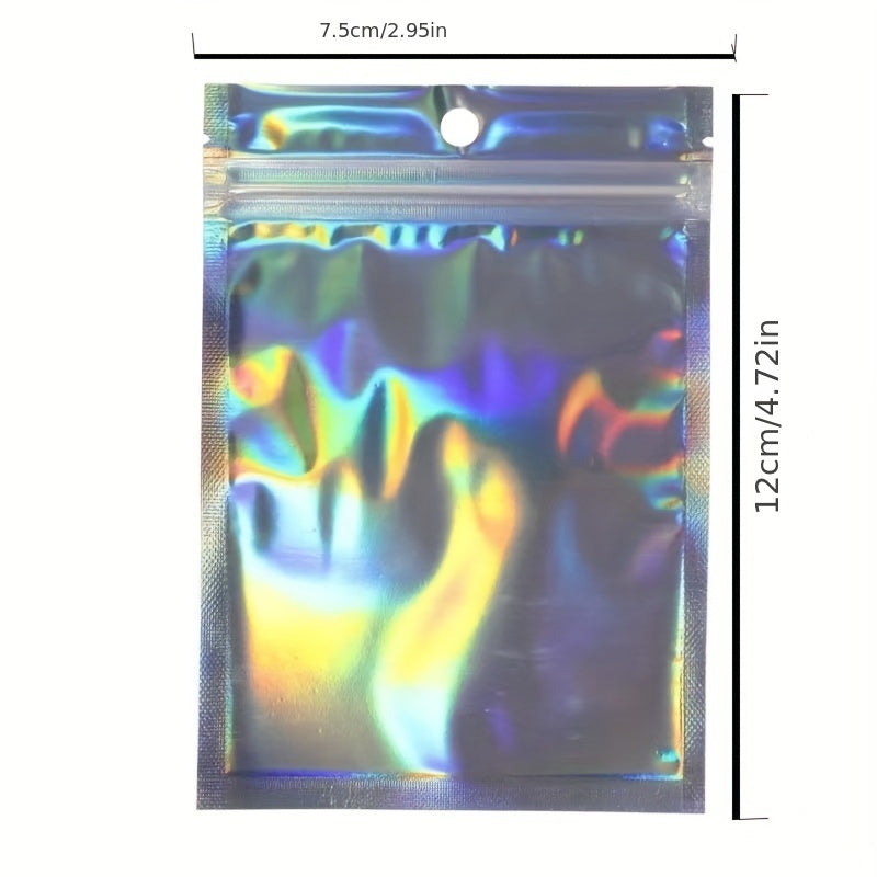 These 60pcs laser jewelry packaging bags are made of aluminum foil with a rainbow magic design. They are perfect for storing jewelry, cosmetics, and other small items.