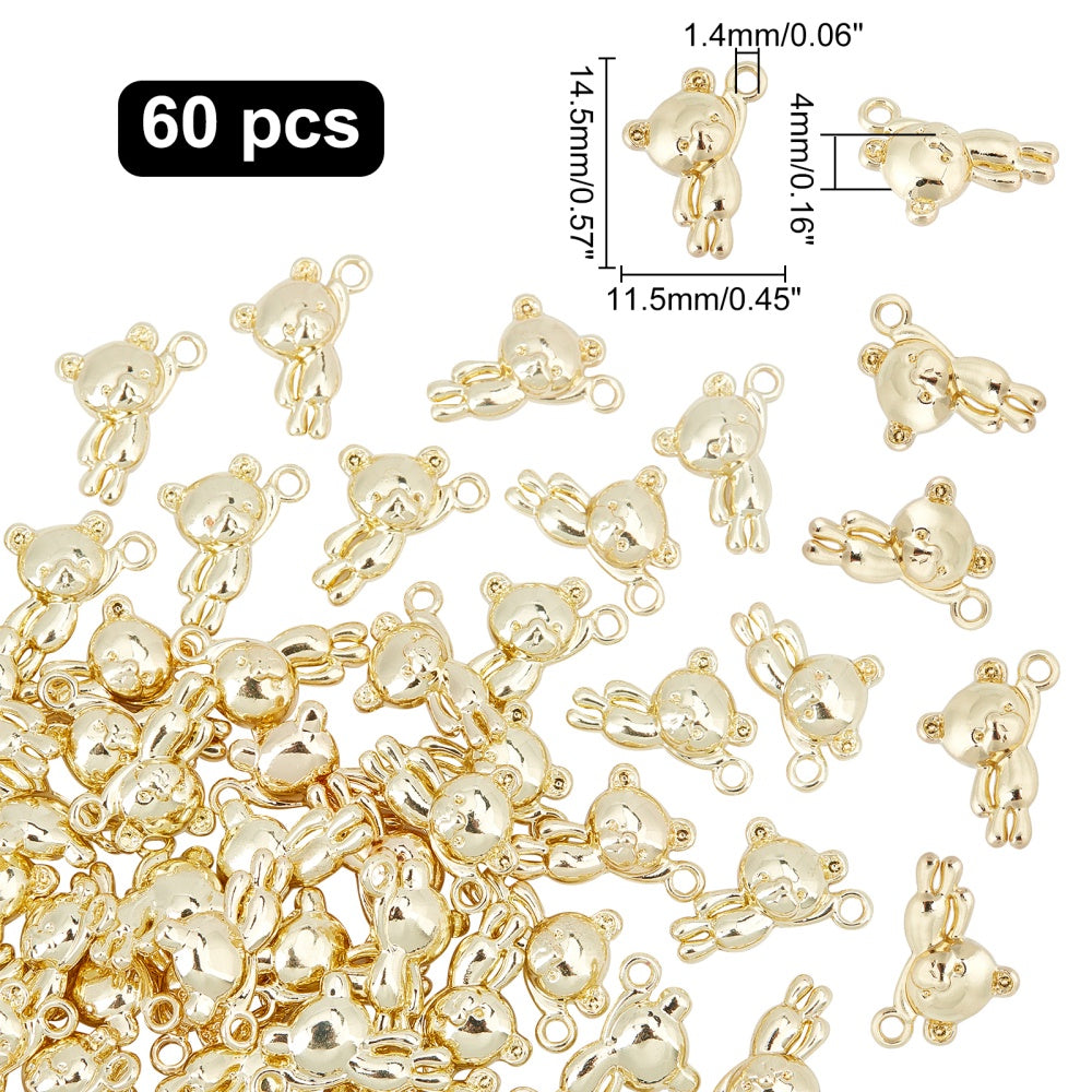 60pcs Light Golden Bear Alloy Pendant for DIY Accessories