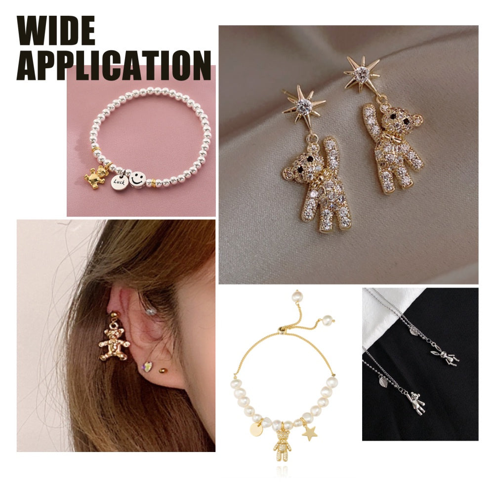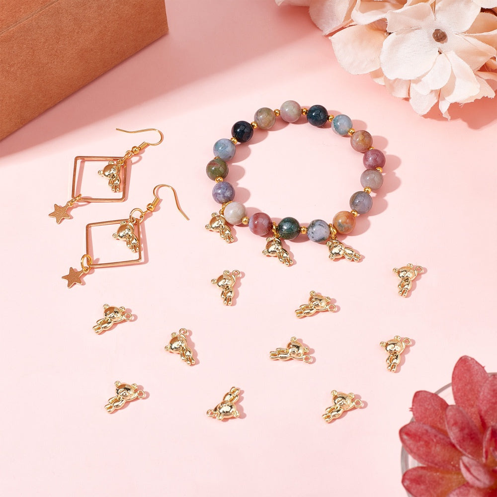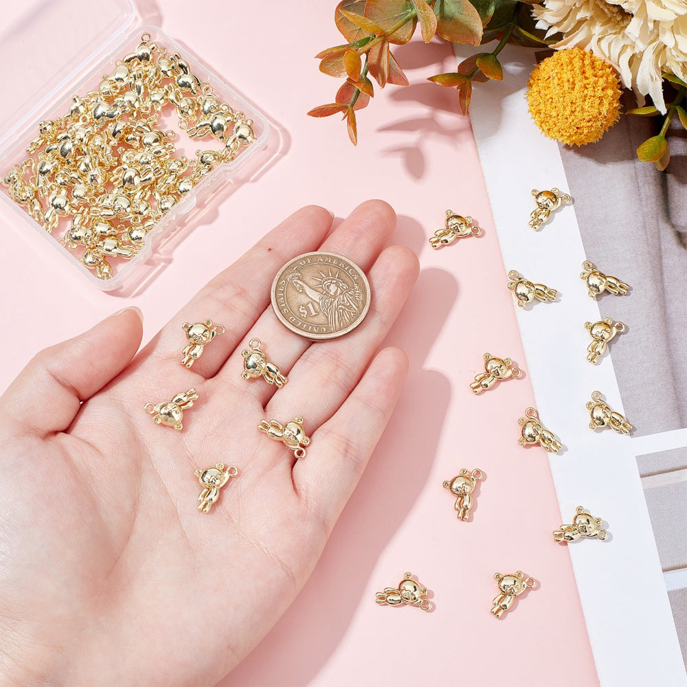 This box contains 60 adorable light golden little bear alloy pendants that are perfect for creating your own earrings, bracelets, necklaces, and other accessories.