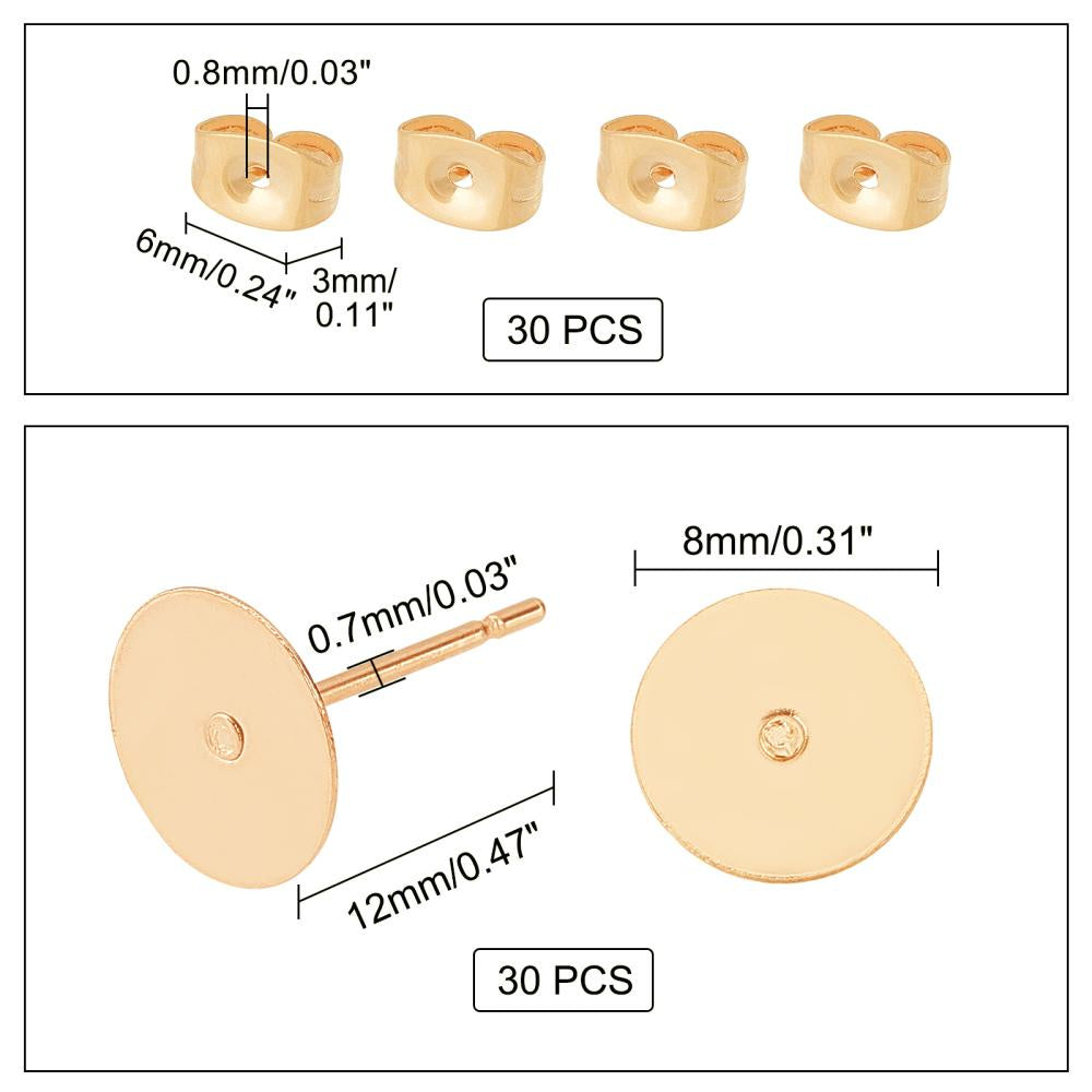 These stainless steel stud earrings are perfect for making your own jewelry. Each earring comes with ear nuts and backs. The flat round design adds a touch of elegance to your creations.