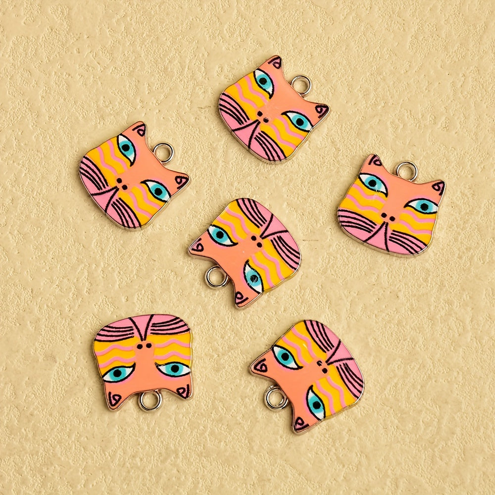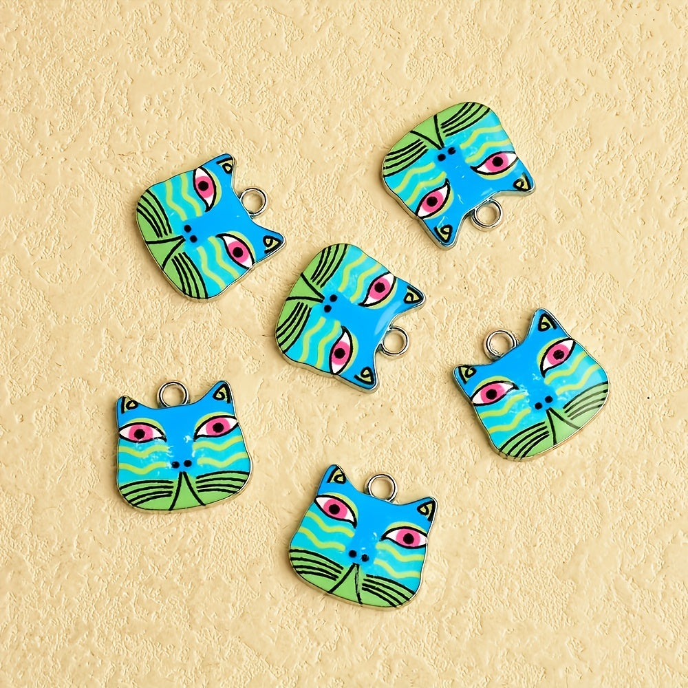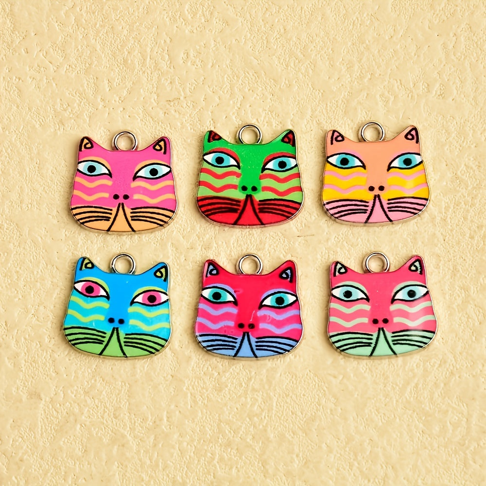 • Set of 6 cat-shaped alloy pendants in assorted colors