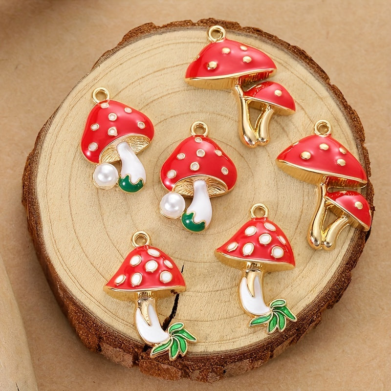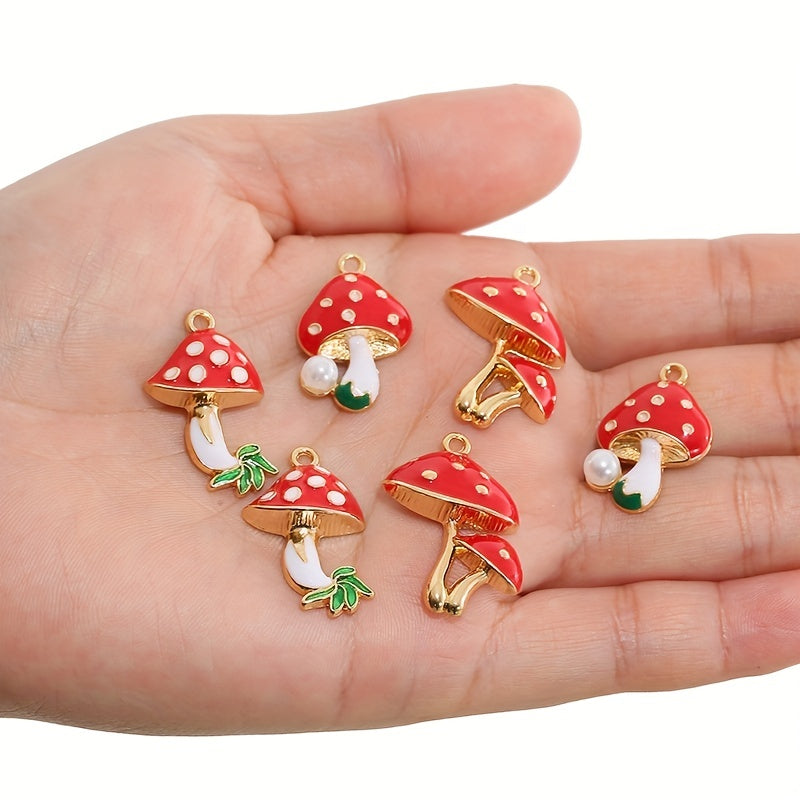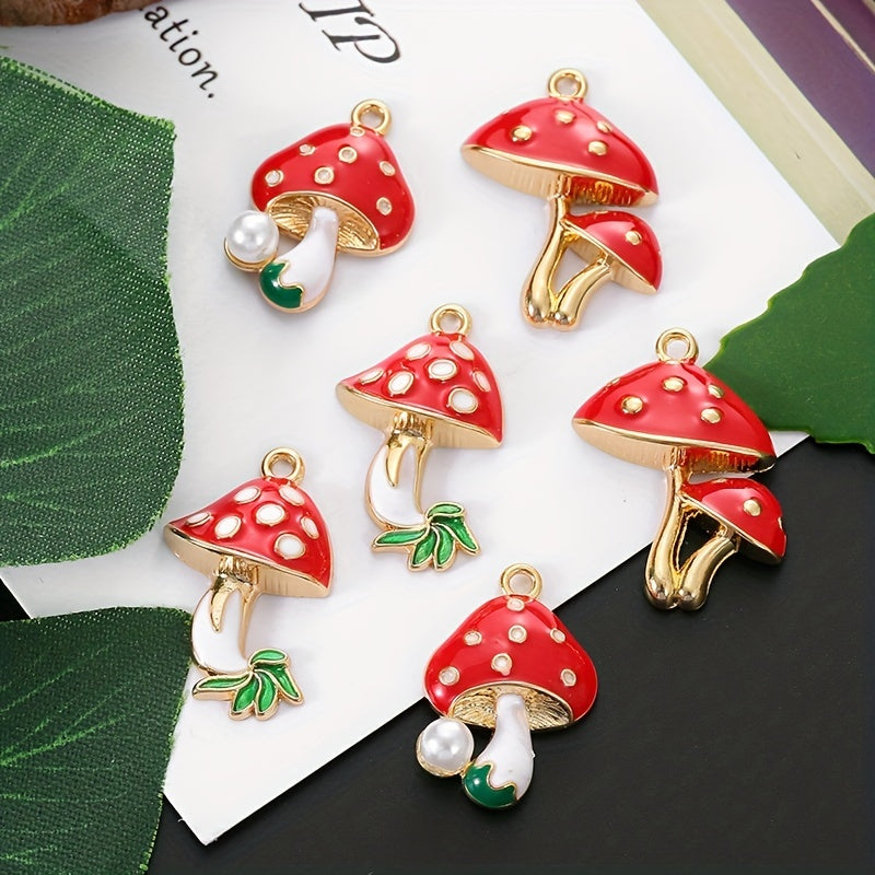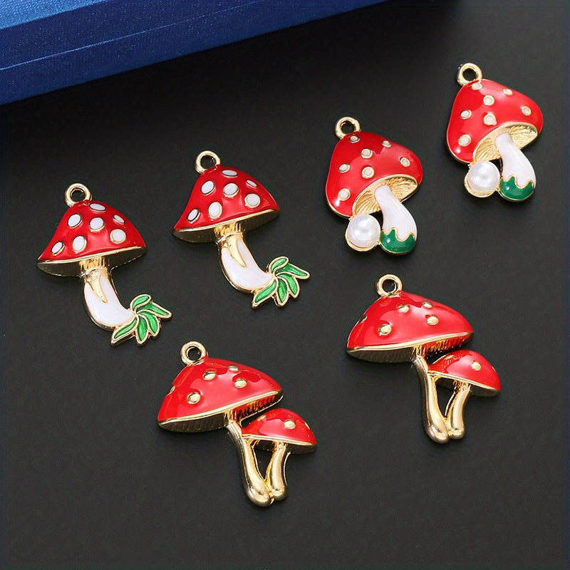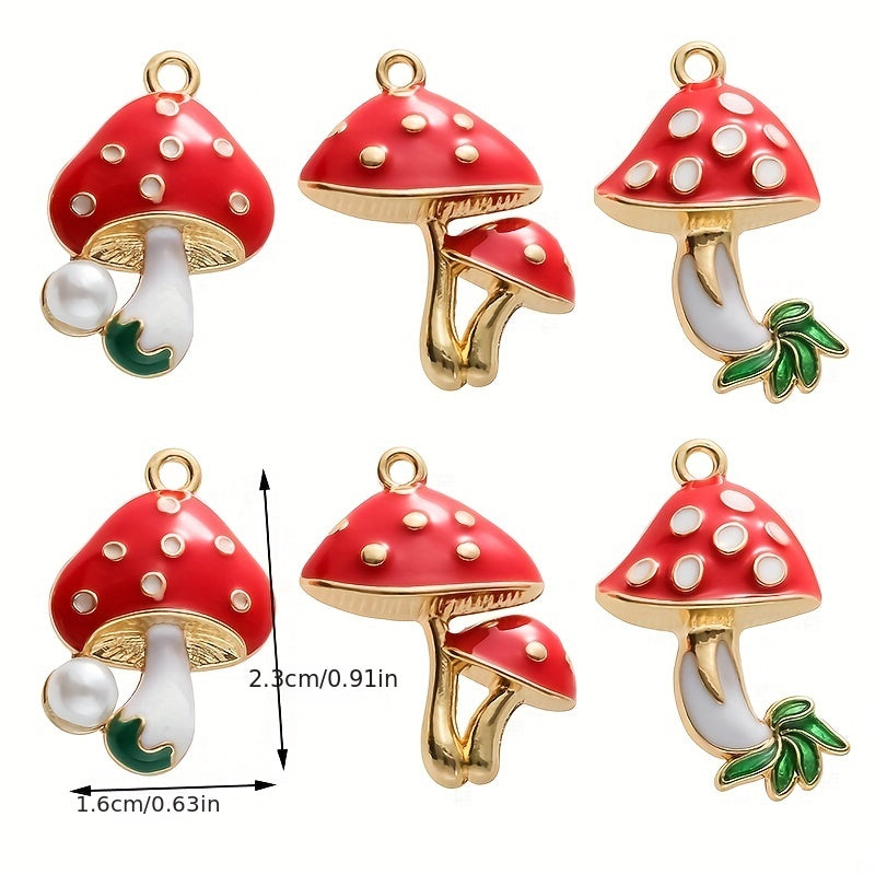 6pcs Enamel Mushroom Charms Pendant for DIY Jewelry Making