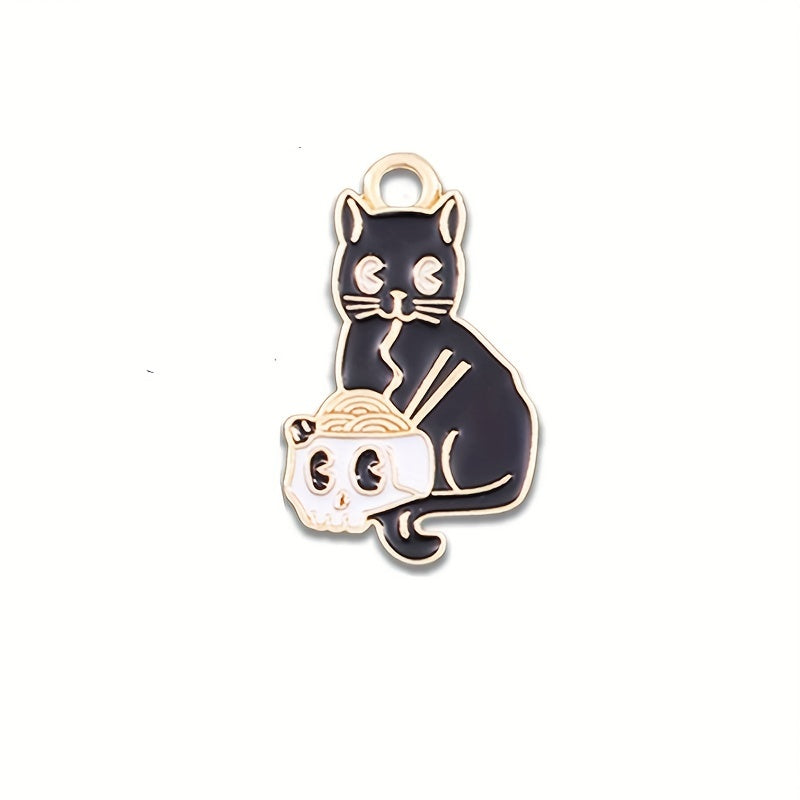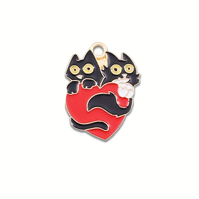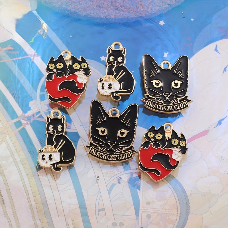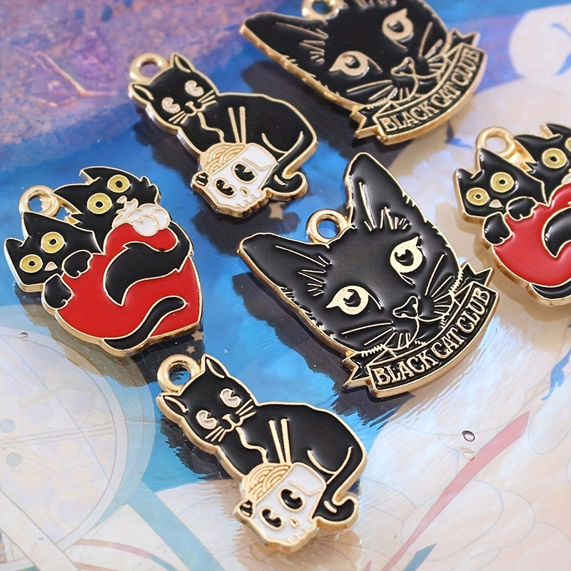 6pcs Mixed Cat Heart Skeleton Cartoon Pendants DIY Jewelry Making